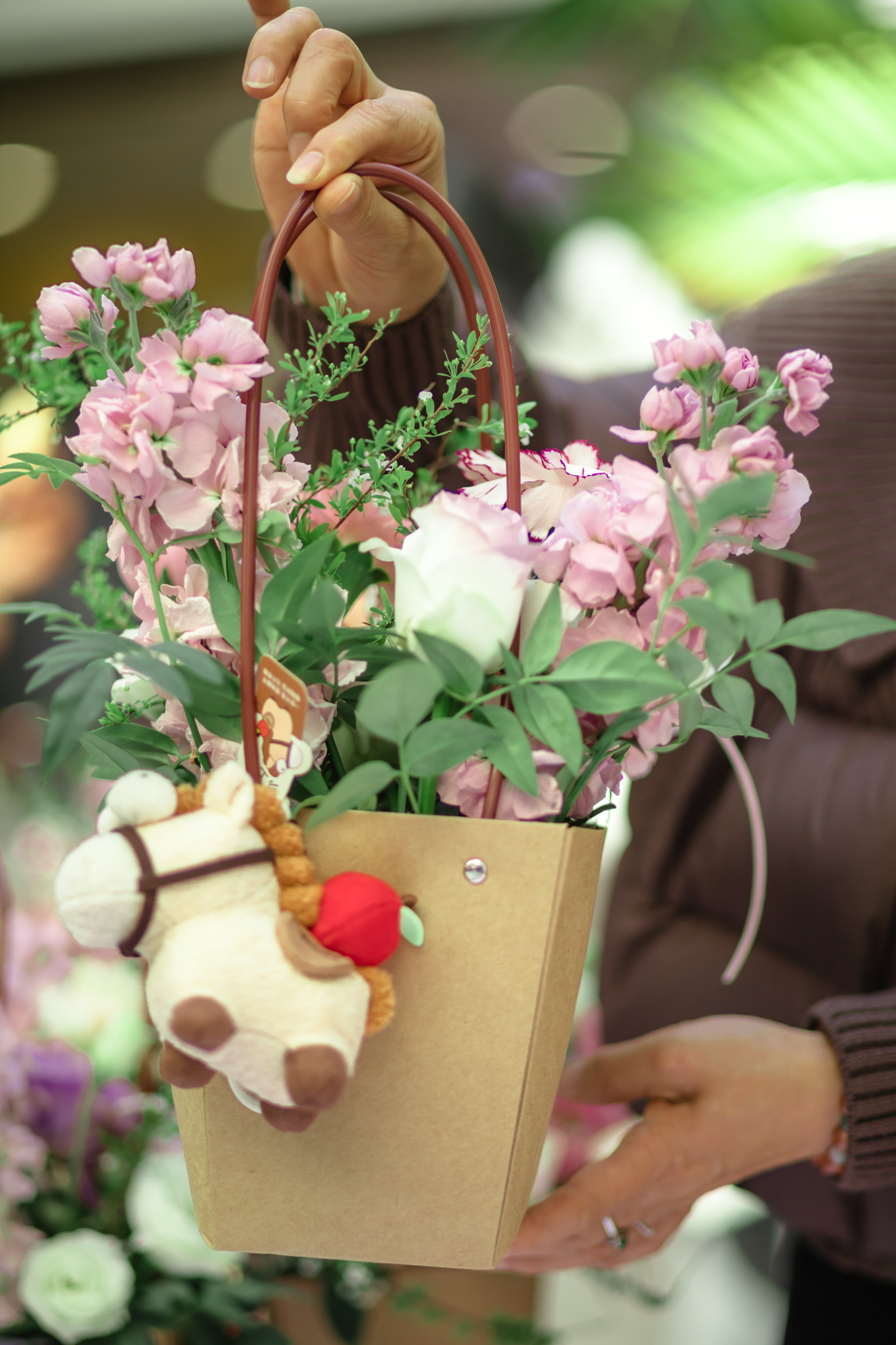 在这里,每一家店铺各有千秋,“缤纷花诚”如同迷你的花卉超市,品类齐全且价格亲民;“时时刻刻”则像一家精致花坊,每束花都如精心包装的礼物;“禾莞”被干花与花瓣制品装点成童话工坊;“Logaloga&植荒”则充满奇趣,植物造型的情绪玩偶令人会心一笑。