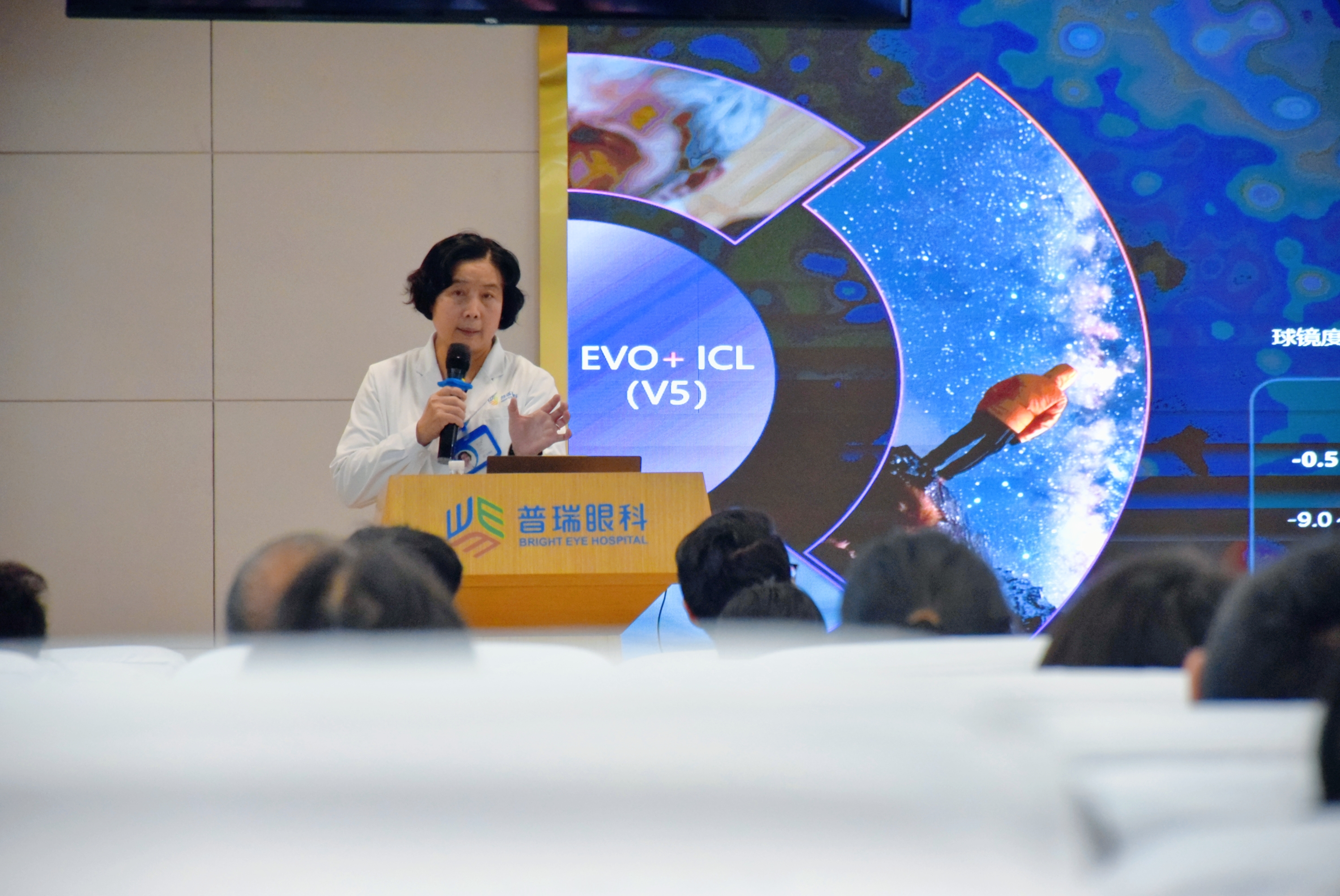 本次发布的核心——EVO+ ICL (V5)晶体,是眼内镜技术的一次重要迭代。其最大亮点在于晶体光学区扩大到6.1mm,相当于角膜平面光学区扩大到7.6mm,能更有效地覆盖患者暗瞳,从而显著减少夜间眩光与光晕。该技术矫正范围广泛,覆盖50-1400度近视及600度以内散光,且作为不切削角膜的“加法手术”,具有可逆性。