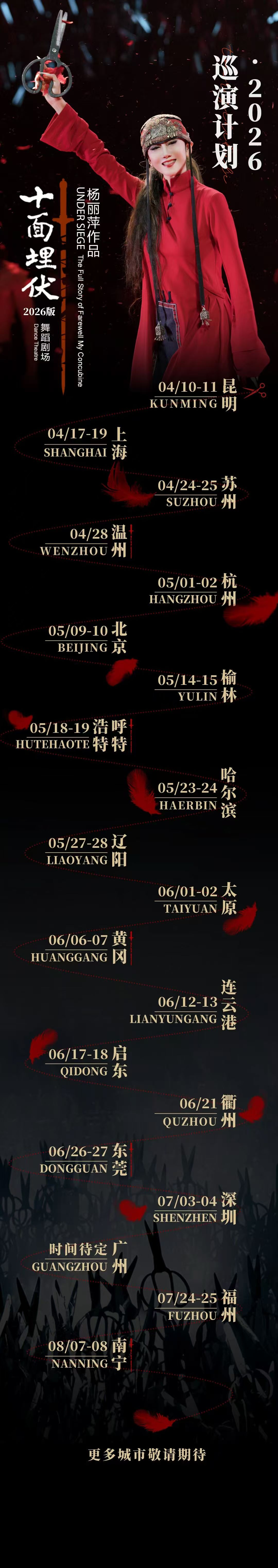 目前,该剧全国巡演排期已陆续规划中,在昆明首演后,将陆续登陆国内多个城市,并展开海外巡演。届时,观众将有机会走进剧场,感受这场融合传统美学与现代意识的舞蹈盛宴,在剪刀悬垂的视觉震撼与肢体叙事的张力中,体验一场跨越时空的“埋伏”与“突围”。