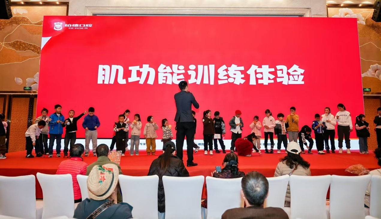 活动特邀武汉大学口腔正畸学博士王星星在现场进行肌功能训练教学。王星星以生动的语言和形象的演示,向家长阐释了口呼吸、异常吞咽等不良习惯对面部发育的影响,并指导孩子们进行简单的唇肌和舌位训练,让在场家长直观认识到,早期干预肌功能是引导颌骨正常发育、预防和减轻错颌畸形的关键一环。