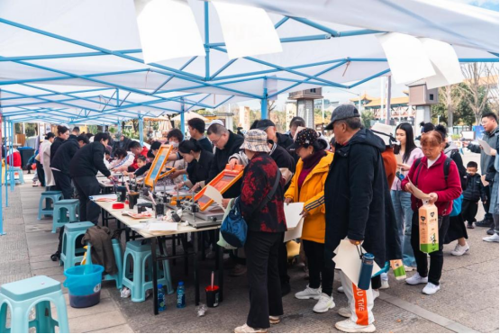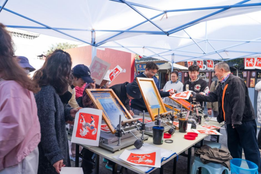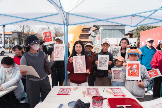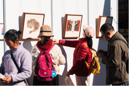 活动现场设置多个文化体验区,处处洋溢着浓厚的文化气息与新春暖意。在版画公共教育活动中,云南艺术学院美术学院版画系师生李斌、王雷、车地等,以丝网版画、黑白木刻等形式,生动呈现了云南甲马版画及马年贺岁小版画等丰富多样的版画作品。活动不仅让市民观众近距离领略到版画艺术的独特魅力,体验到亲手制作版画、并将个人作品带回家的创作乐趣,也充分展现出云南地区深厚的文化底蕴与蓬勃的艺术创新活力,为公众带来了一场兼具趣味性与深度的艺术体验。