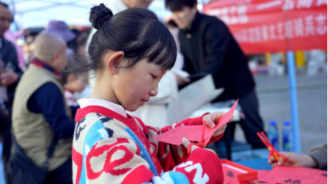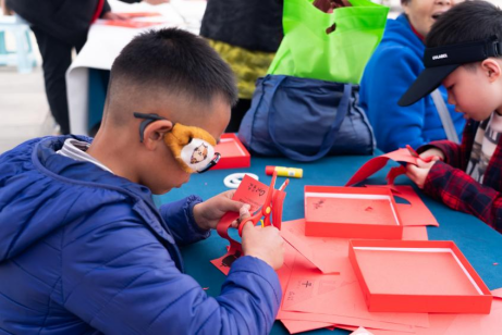 剪纸体验区同样气氛热烈。工作人员有序分发剪纸材料,指导老师细致讲解折纸技巧、剪刻方法与纹样处理要点。大家围坐一桌、边学边做,红纸在指尖翻转,剪刀在手中起落。一个个“福” 字、一朵朵春花等吉祥图案渐渐成形,一张张普通红纸化作精致的吉祥纹样,寄托着人们对团圆安康、幸福美满生活的真挚向往。