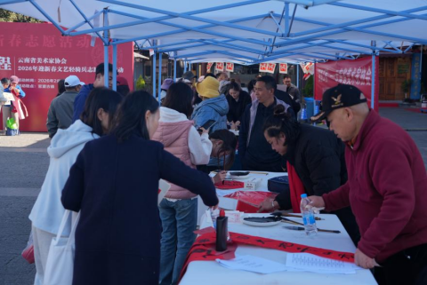 马年大吉启新程,新春献瑞暖民心。2 月5日,由云南省美术家协会、云南省书法家协会联合主办,云南文学艺术馆、中国共产党昆明市官渡区国欣置业有限公司党支部共同承办的 “强基工程”——云南省美术家协会2026年迎新春文艺轻骑兵志愿服务活动在官渡古镇正式启幕。活动为期两天,以弘扬中华优秀传统文化,展现云南民族民间美术独特魅力为核心,营造欢乐祥和的节日氛围,为广大群众送上真挚的新春祝福。