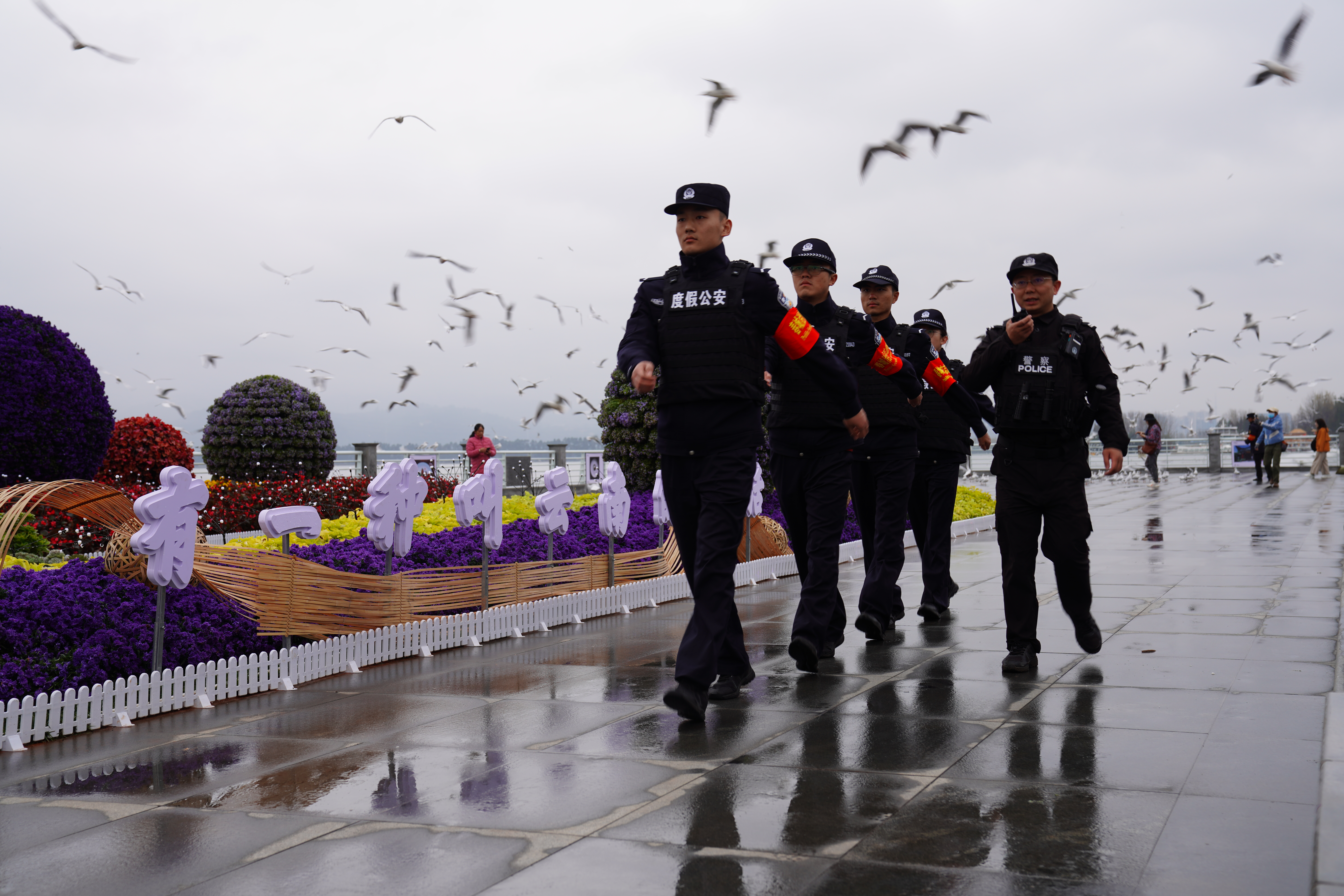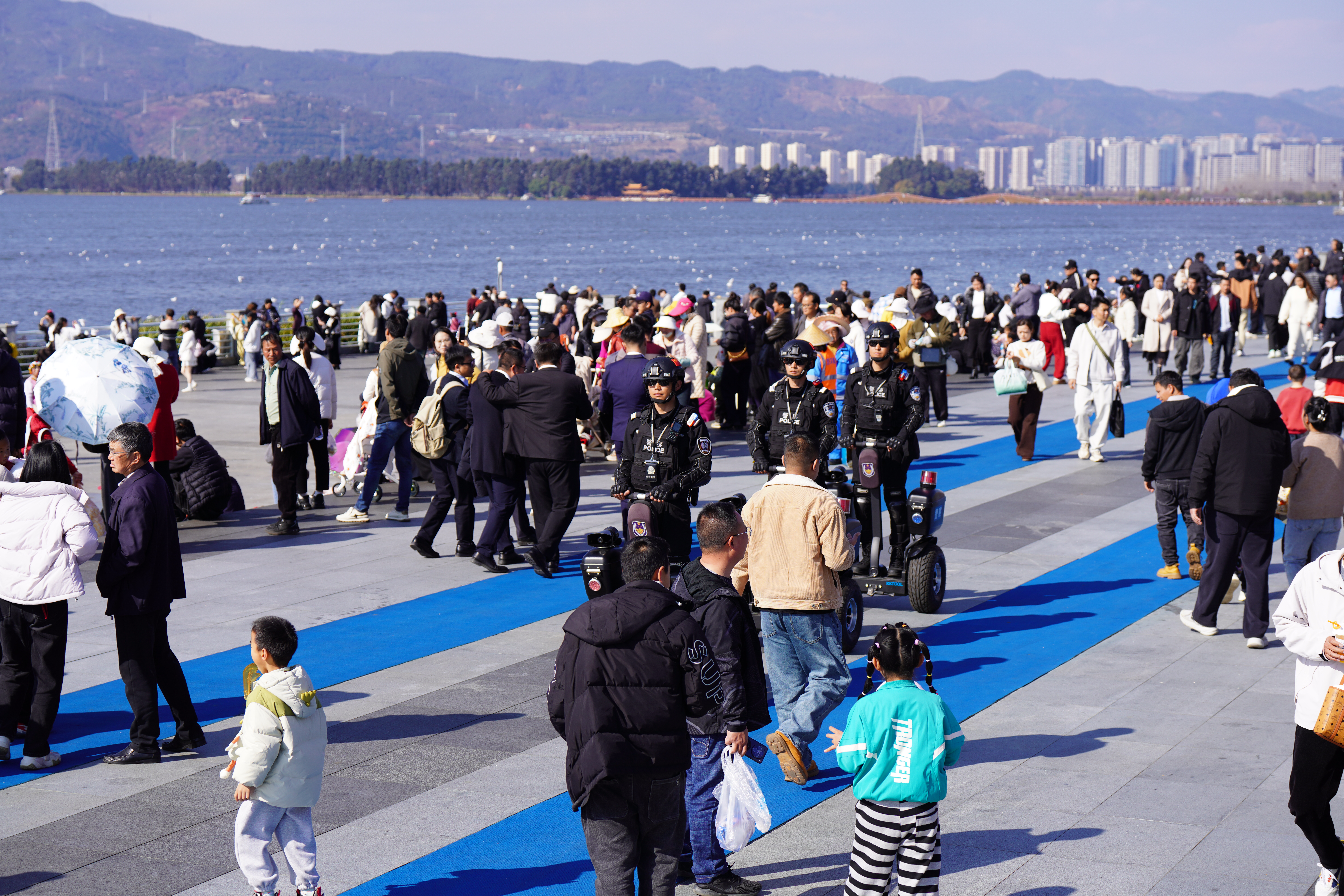 昆明市公安局度假分局辖区紧邻滇池,拥有众多景区景点,覆盖面广、客流量大。今年“观鸥季”期间,海埂片区周末日均人流量达42.27万人次,同比增长15.7%。面对客流压力,度假分局优化工作机制、提升管理服务水平,全力开展秩序维护、交通疏导、应急救援与综合治理等工作,持续擦亮云南旅游警务“金名片”,为市民游客营造安全、文明、和谐的观鸥环境。