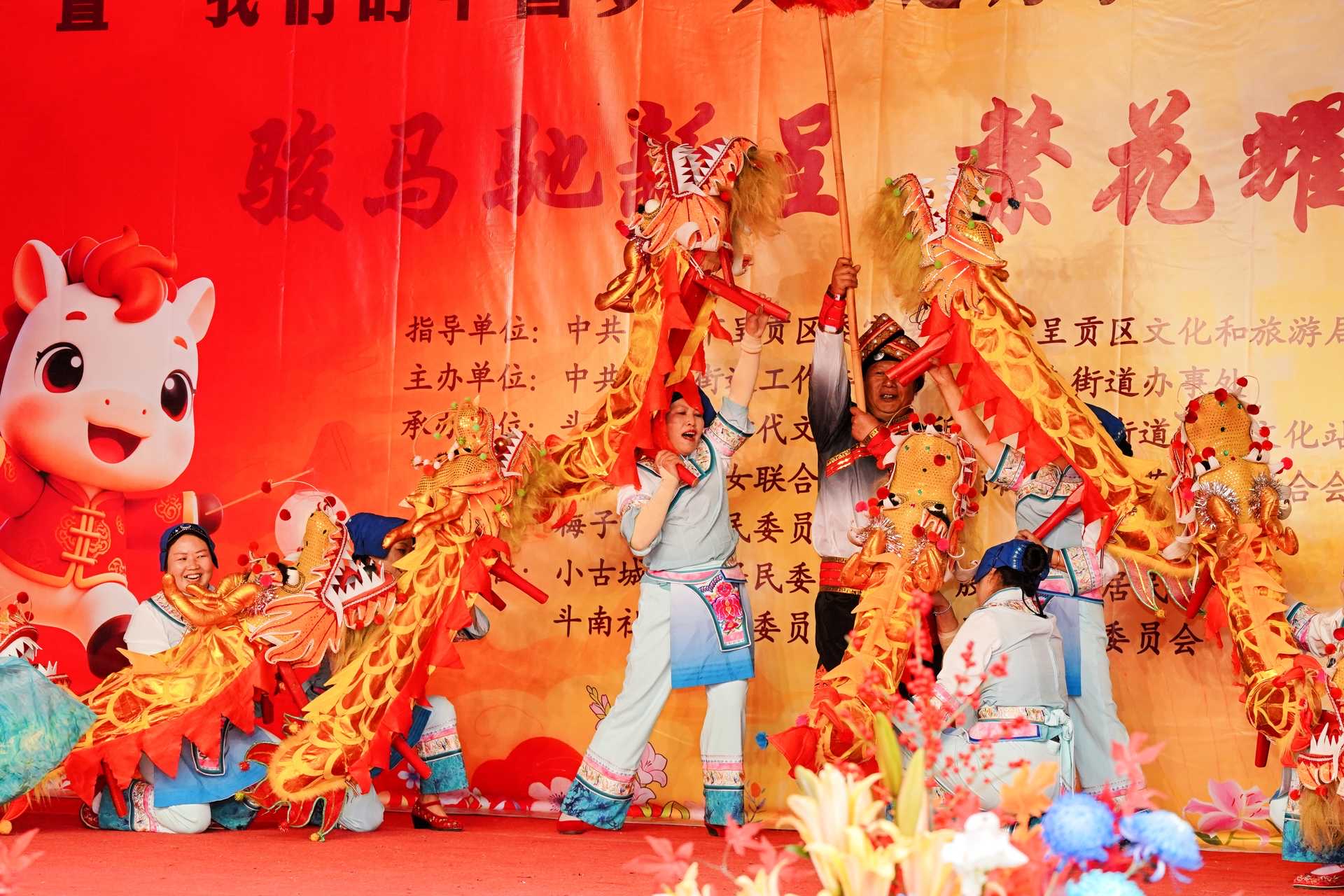 活动在欢快的春节联欢文艺汇演中拉开序幕。由各社区文艺骨干精心编排的文化表演轮番上演,铿锵有力的《板凳龙》、韵味悠长的非遗滇戏、灵动传神的花灯节目接连登台,这些根植于本土、来源于生活的文艺作品,生动展现了斗南深厚的文化积淀与人民群众昂扬向上的精神风貌,赢得了现场观众的阵阵掌声。