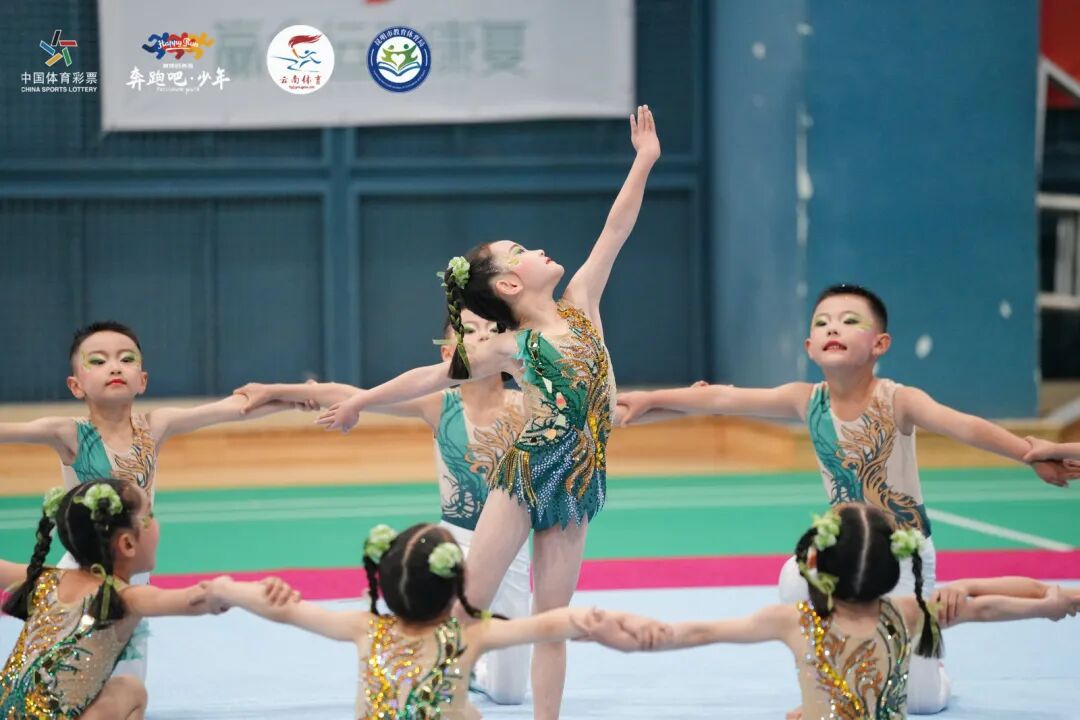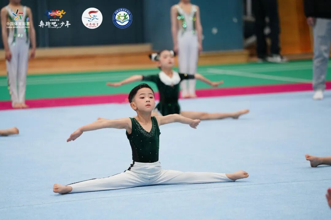 来自昆明队的小选手们用充满创意的编排和默契的配合,展现出幼儿体操的活力与趣味;西双版纳队的萌娃们则凭借灵动的步伐和甜美的笑容,赢得了现场观众的阵阵掌声。尽管动作略显稚嫩,但孩子们眼中的自信和专注,让整个赛场充满了温暖与感动。