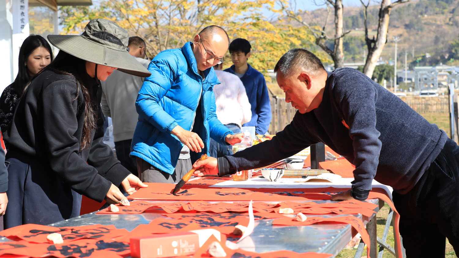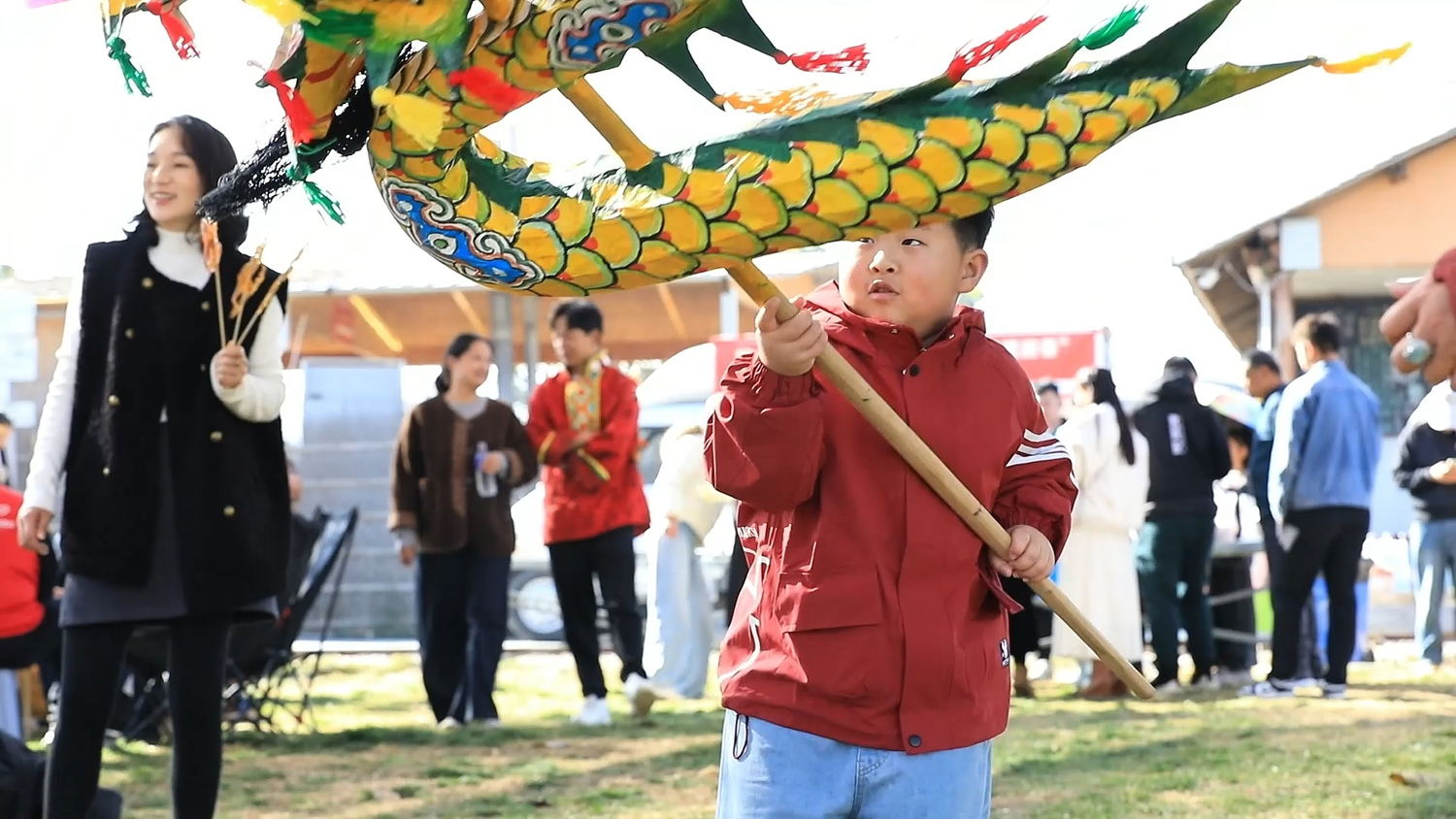 年猪饭的魅力不只在于吃。活动现场,一个充满年味的集市同样人气十足:书法家写春联、非遗糖画面塑展示、孩子们体验舞龙……这些互动项目让过年仪式感更强。