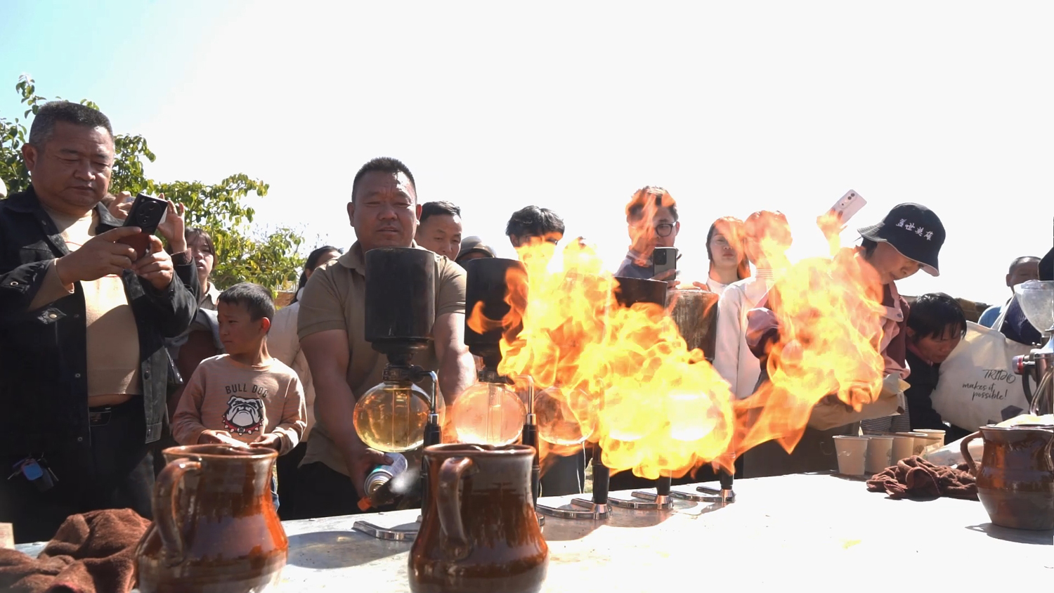 在传统年味中,新消费元素的加入带来了别样火花。来自保山的“咖叔”李金合把“火烧咖啡”带到现场,用本地小粒咖啡制作热饮,让游客在品尝年猪饭后还能感受咖啡的香醇。