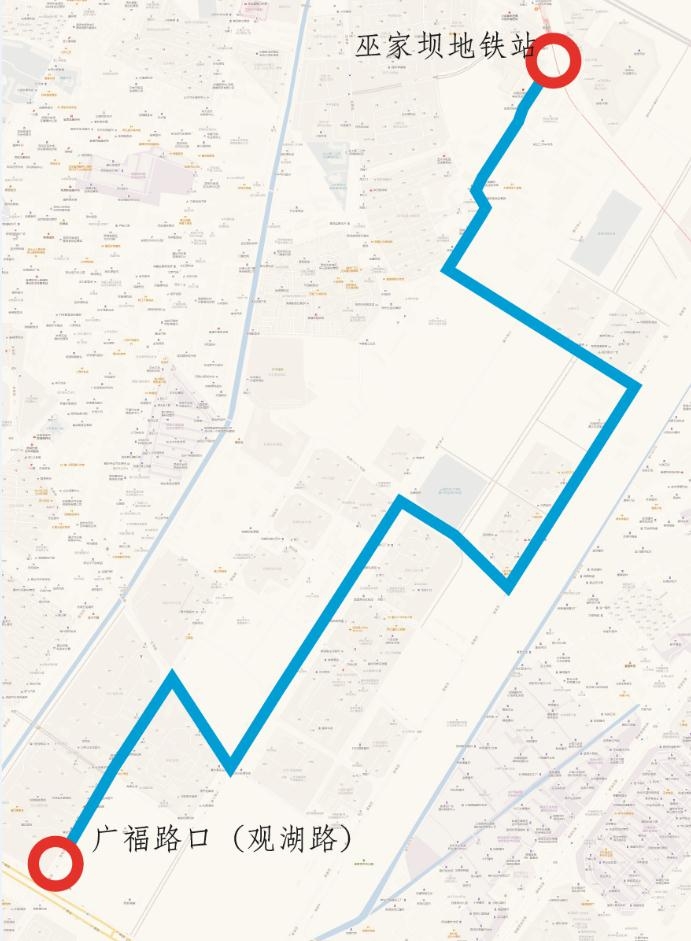 新开的Z167路起于巫家坝车场,止于广福路口(观湖路),运营时间为7:30—19:30,票价2元,支持公交IC卡、微信、支付宝等多种支付方式,沿途覆盖和美路、巫家坝路、观湖路等多个关键路口。