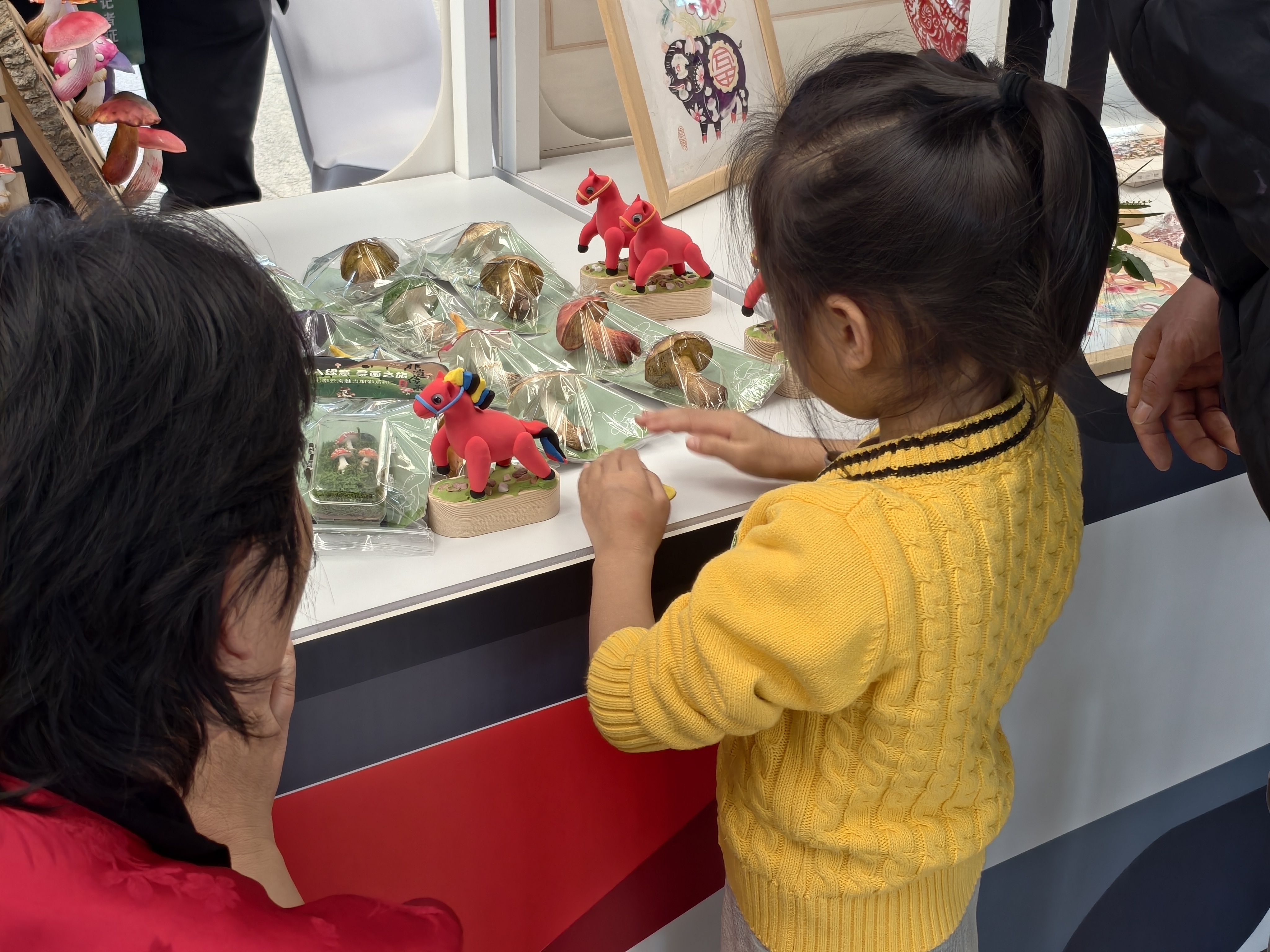 飞翔的红嘴鸥、逼真的野生菌、腾跃的小马,西山区艺彩面塑工艺品工作室面塑传承人于老师将野生菌、红嘴鸥等特色文化符号融入面塑制作中,让成品的形态更加栩栩如生、色彩鲜艳且易于保存。“3D立体的野生菌冰箱贴、飞翔海鸥都很受欢迎,马年即将到来,有很多小朋友体验了制作小马面塑,了解了传统文化。”她说。