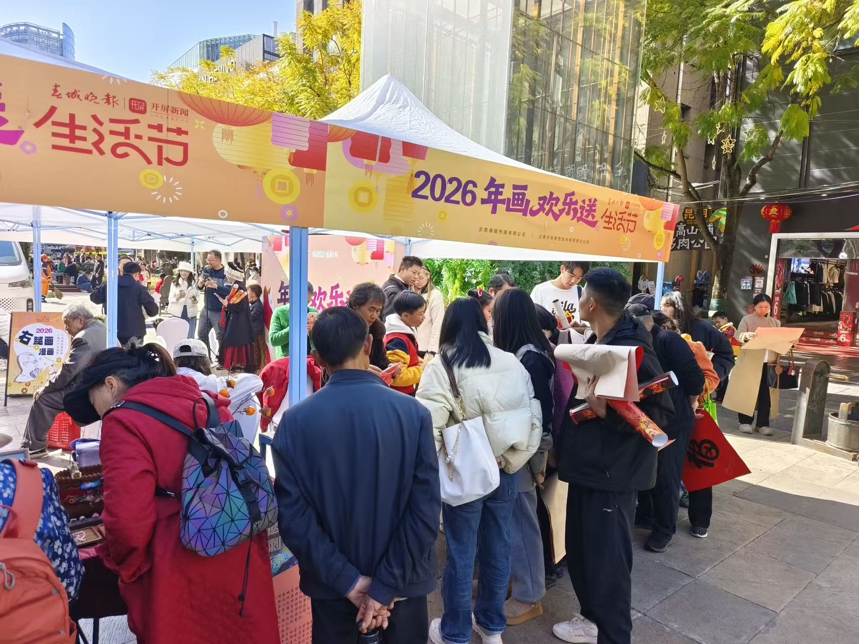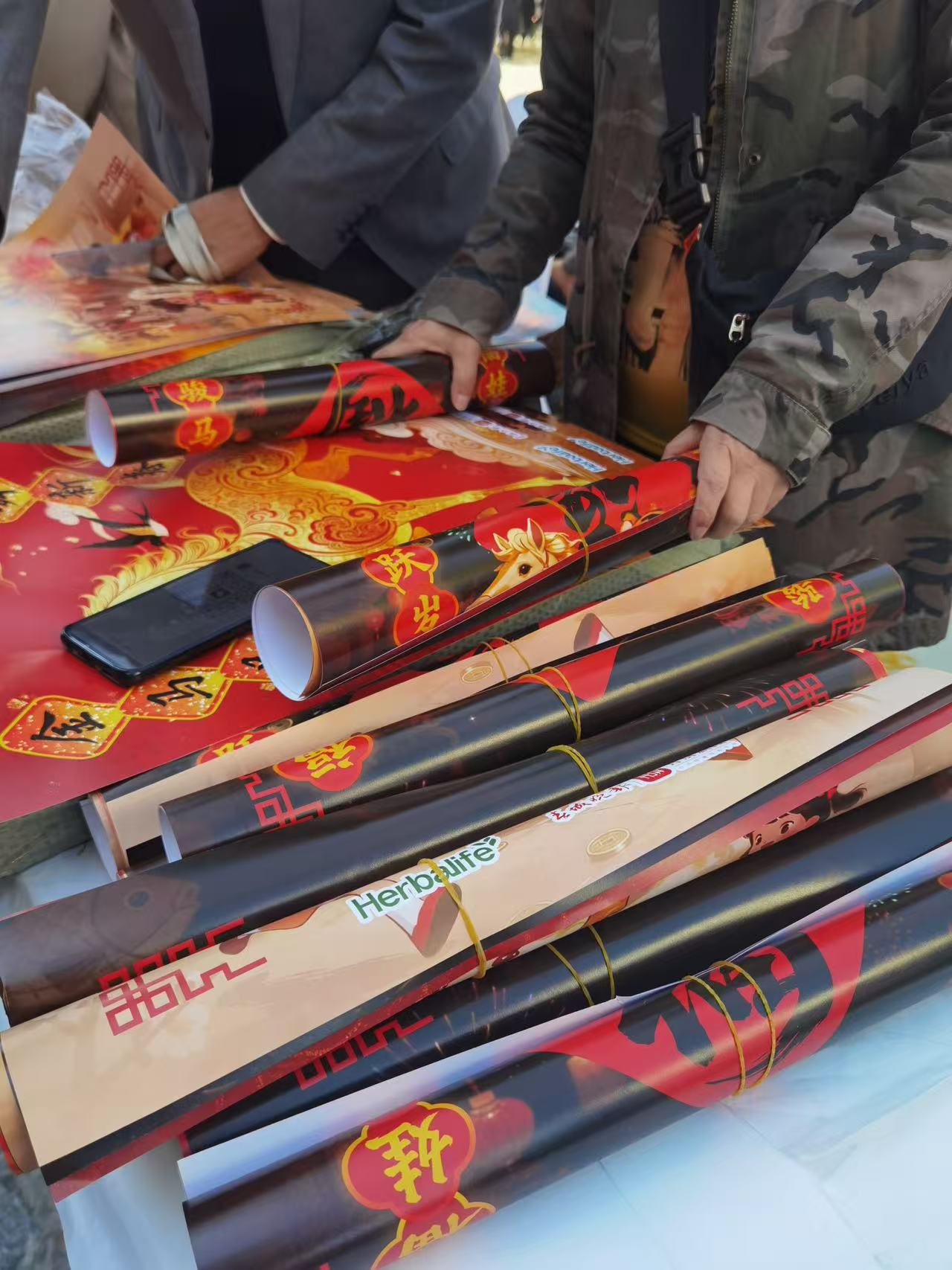 活动现场人头攒动,队伍蜿蜒数十米。市民们有的携家带口,有的和朋友相伴而来,脸上洋溢着喜悦。空气中飘荡着墨香和节日音乐,路过的行人纷纷驻足加入。短短几个小时,康宝莱就送出了2000余份定制年画。