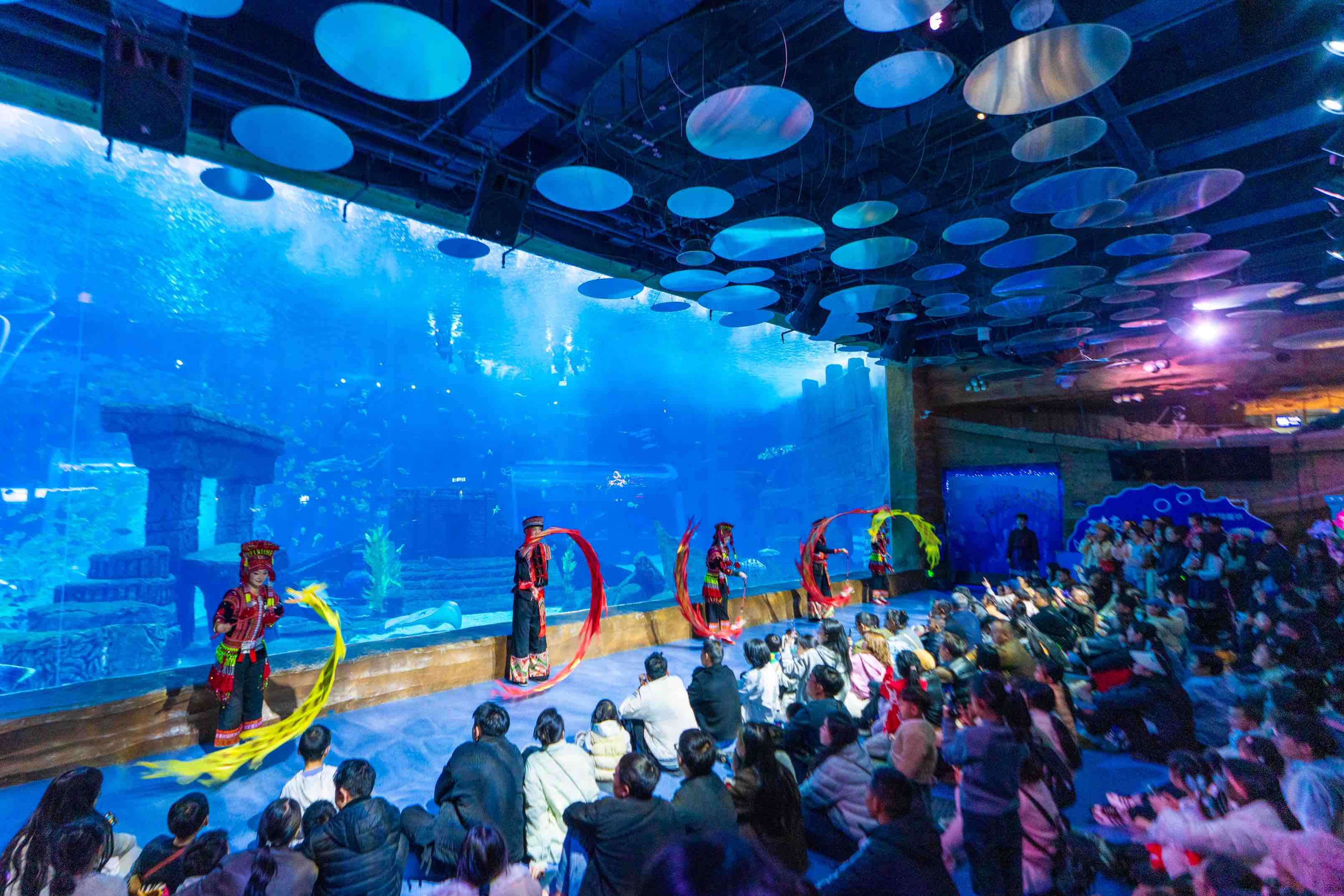 这个春节,昆明融创海世界焕新开启“海底非遗年”主题活动。其中,最具突破性的亮点当属全国首创的“水下非遗花腰彝舞龙”——将云南独有的国家级非遗“花腰彝舞龙”首次引入深海展缸。游客不仅能见证千年彝绣在波光中流转,还能沉浸式体验民族文化与海洋奇观的创新融合,在蔚蓝深处过一个有底蕴、有看点、有记忆的中国年。