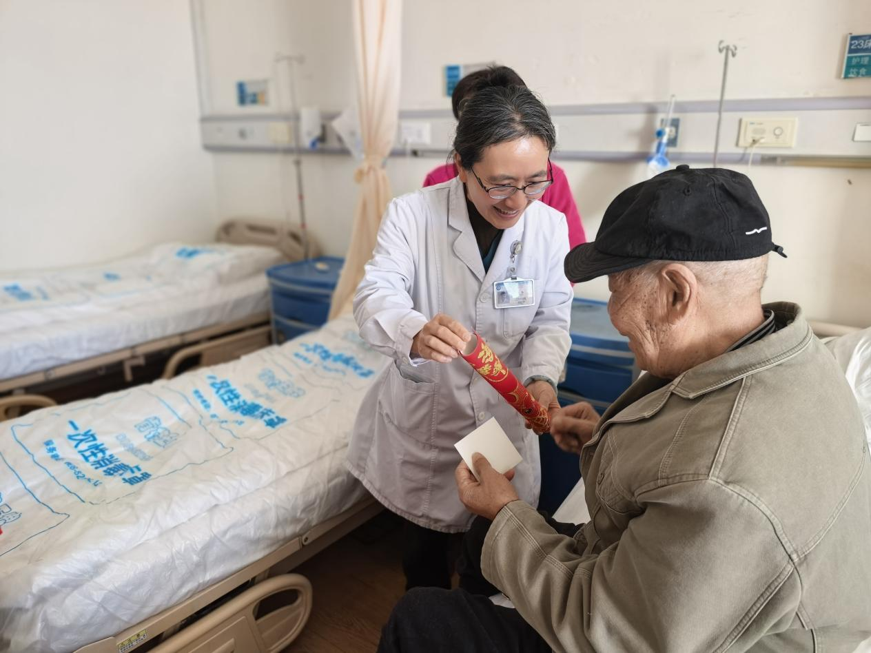 老年医学科的患者,大多高龄、多病共存,不少人失能或半失能,住院时间漫长。对于他们而言,过年回不了家,最怕的从来不是病痛的折磨,而是被岁月遗忘、被亲情疏离的孤单。而这份小小的福袋,这份真诚的陪伴,从来都在诉说着一句最动人的承诺:这个年,我们陪你,不缺席、不辜负,让每一位无法归家的老人,都能在病房里,感受到年的味道、家的暖意。