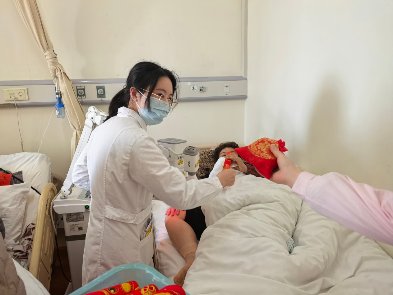 “有你们在,心里就踏实。”60床的罗爷爷接过福袋,低头轻轻抚摸着袋上的“福”字,声音里满是动容。医护人员还记得,去年此时,这位不善言辞的老人,曾悄悄往护士站塞了一把糖果,转身便匆匆离开,像个怕被发现心意的孩子。如今,那把糖果依然躺在护士站的抽屉里,无人舍得品尝,成为医患间最珍贵的念想。