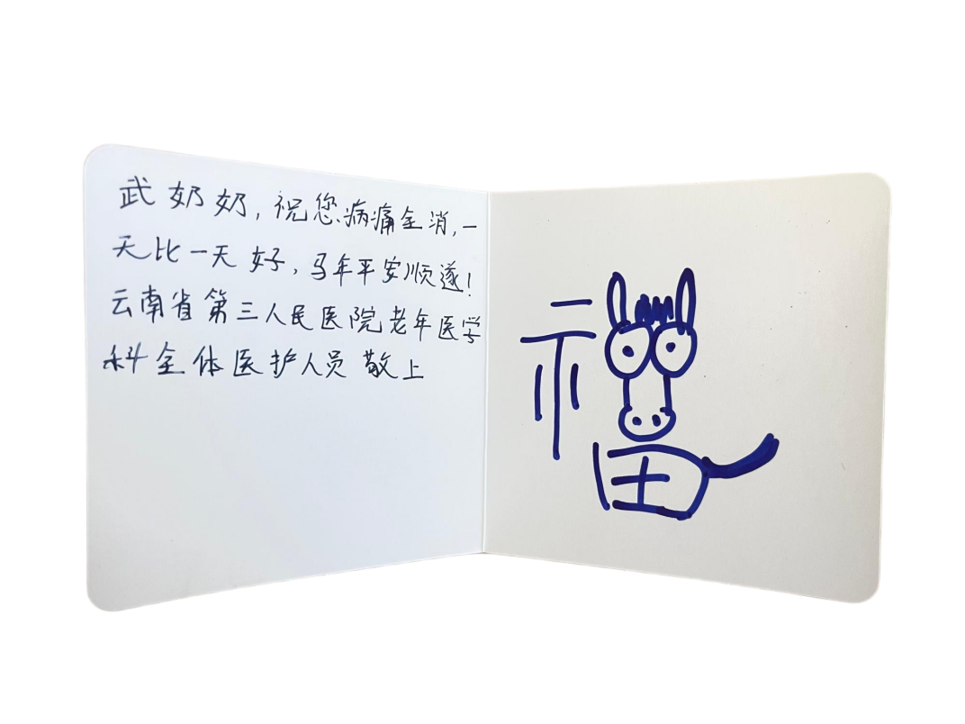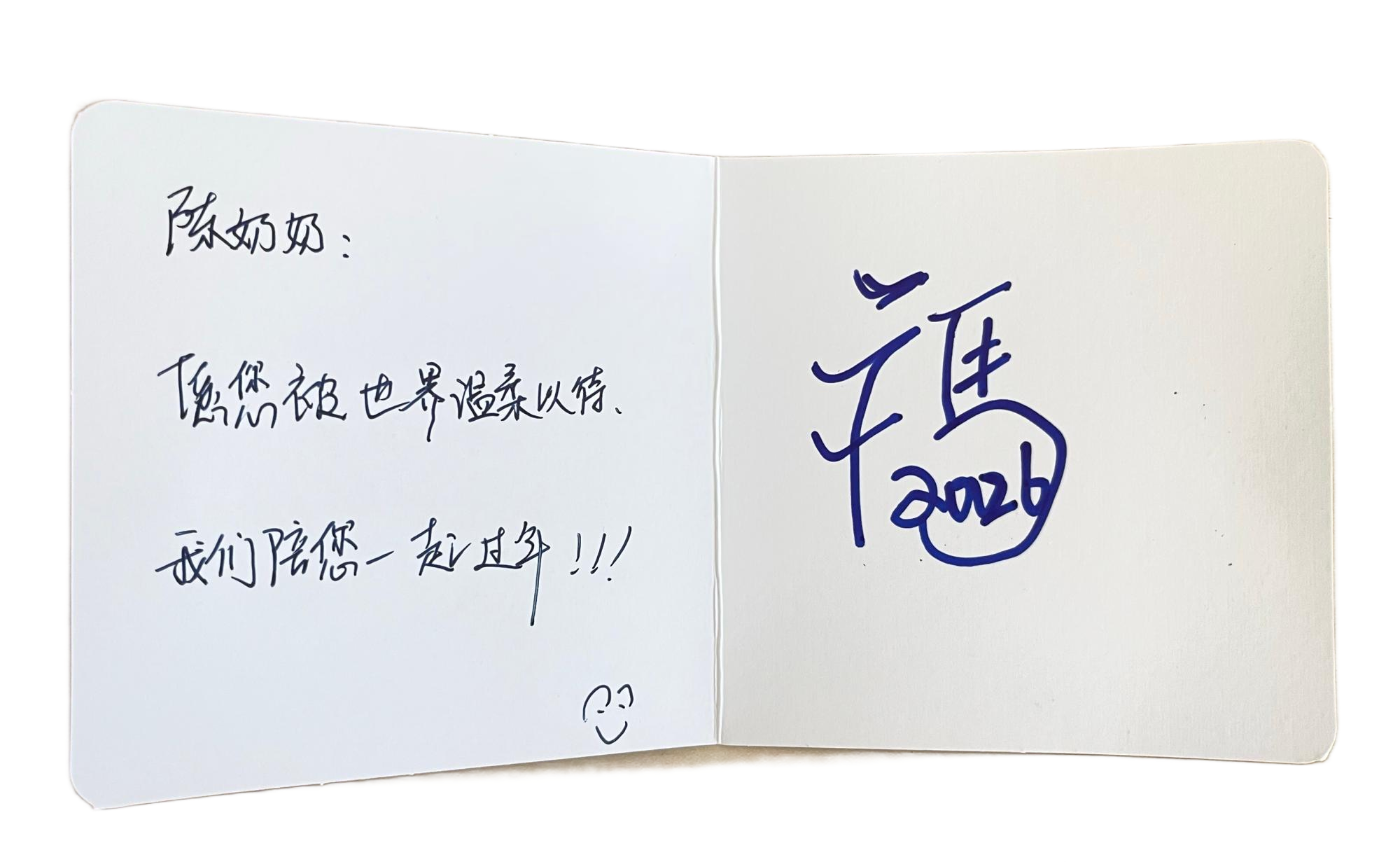 字迹或娟秀、或刚劲,或稚嫩、或沉稳,来自科室的医护人员、规培学员,每一笔都饱含真诚,每一字都凝聚牵挂。在他们心中,年从来不是一个简单的日期,而是有人惦记、有人陪伴、有人守护的温暖瞬间,这份温暖,无关远近,无关隆重,只关乎真心。
