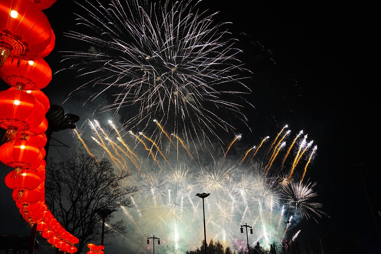 在辞旧迎新之际,七彩云南古滇度假区还将会有持续15天的烟花盛宴。绚丽的烟花如星河,在滇池上空织就一幅流动的光影画卷,重现“爆竹声中一岁除”的诗意场景。现场欢呼声与烟花声共鸣,游客们纷纷举起手机,记录下这难忘的瞬间。