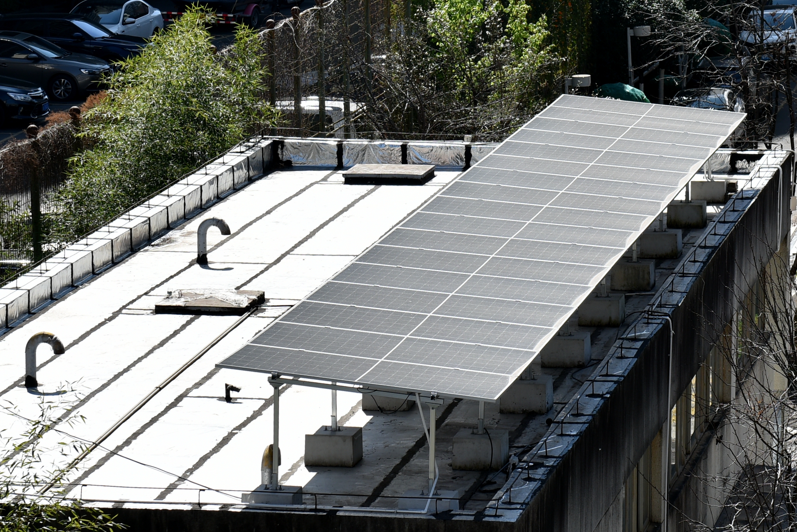 近年来,省高院坚持以“节约、绿色、健康、和谐”为引领,全方位、系统性推进节能降耗。通过专项资金投入,省高院先后完成供水管网改造、照明设备节能升级、智能控制器加装、太阳能路灯铺设、能耗监测平台建设等一系列技术改造,实现了能源使用的精细管控与有效节约,还建成光伏发电项目,着力提升资源循环利用水平。