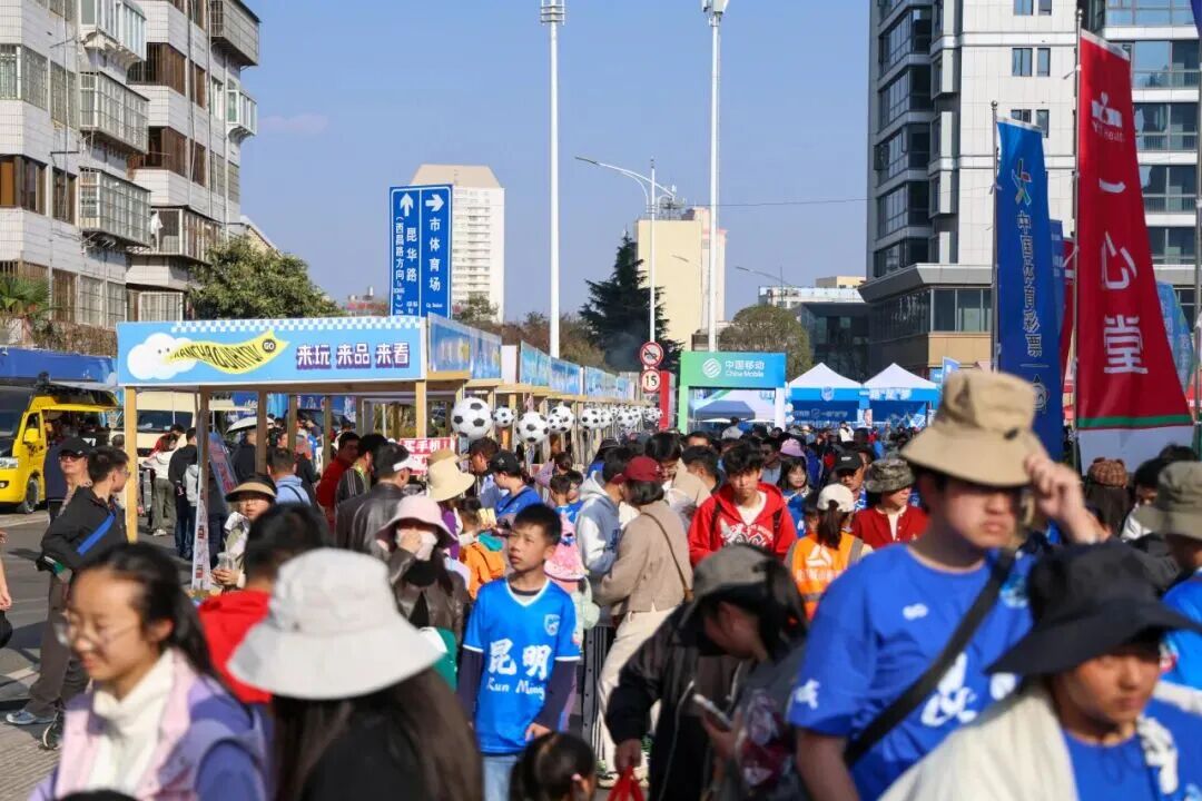 以赛为媒,以赛兴城,体旅融合的红利在赛事中持续释放。为推动赛事流量转化为文旅增量,昆明依托本次主场赛事,现场设置了特色市集,汇集了文创、茶咖、美食等两地的地方风物,成为展示云南多元文化的窗口,进一步推动了“赛事引流、消费留客”的良性循环,实现了体育竞技、文化传播与旅游发展的多元共赢。来自昆明球迷协会的申云林介绍:“我们协会经常组织大家到各地州为球队助威,有机会我还带着孩子一起参加,增加她的生活乐趣。我觉得昆明办赛的氛围越来越好,现场又好玩又好看,欢迎大家来昆明感受球赛。”