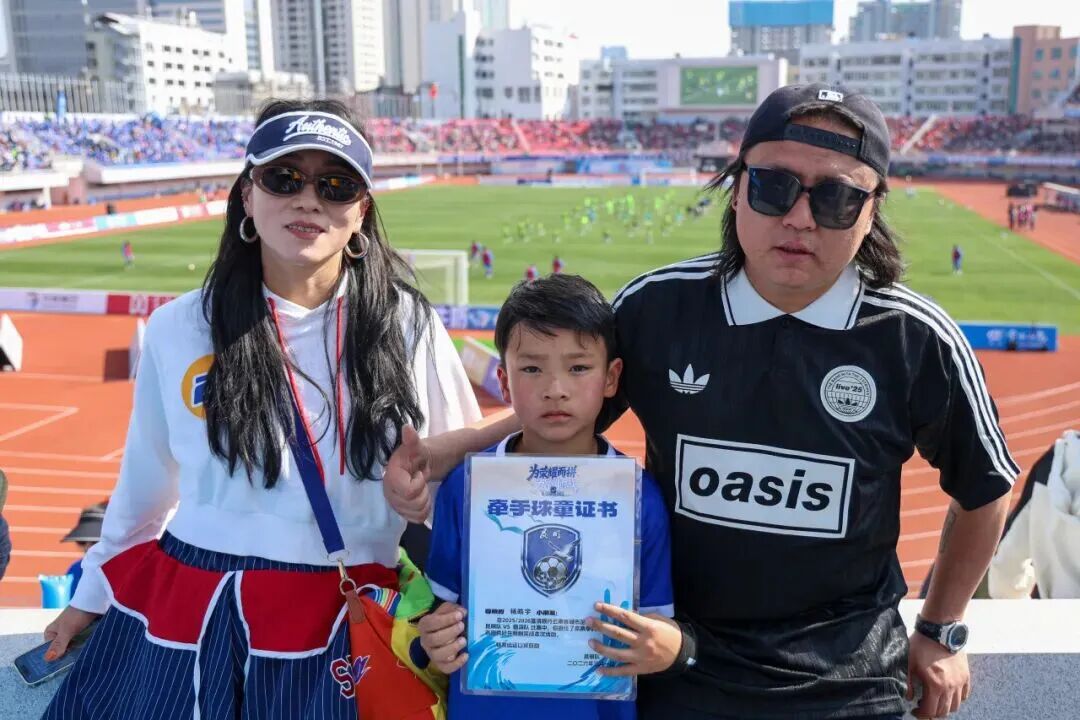 如今,“体育过年”正成为云南新春新风尚,从文山州的春节民族体育大挑战活动,到迪庆的“冰雪+文旅”盛宴,再到彩云体育消费券的发放,各类体育活动让年味更加鲜活立体、直抵人心。云南省城市足球联赛则延续了这份运动热情,吸引着不少家庭集体出动,积极参与,杨皓宇的家庭便是其中之一。滇超看台上,手捧着“牵手球童证书”的杨皓宇吸引着大家的目光,他兴奋地向周围观众说道:“非常开心,刚才球员牵着我们一起入场。”目前小学二年级的杨皓宇已经加入了学校的足球队,他的母亲槐娟说:“受孩子父亲影响,他非常喜欢足球。足球不仅让孩子拥有了更健康的身体,同时更磨练了他的意志,让他的专注力和毅力都有所提升,对他的成长和学习都有帮助。近两年云南的足球氛围越来越好,也让孩子更有训练的动力,除了准备这次活动之外,这个寒假他还参加了足球训练营,非常充实。足球运动,也成了我们的家庭活动之一。”谈到本次担任球童的感受,杨皓宇坦言:“亲身经历‘大赛’的氛围让我感觉非常震撼,和学校里不一样,非常荣幸。我要好好学习和训练,以后也要成为一名出色的球员。”