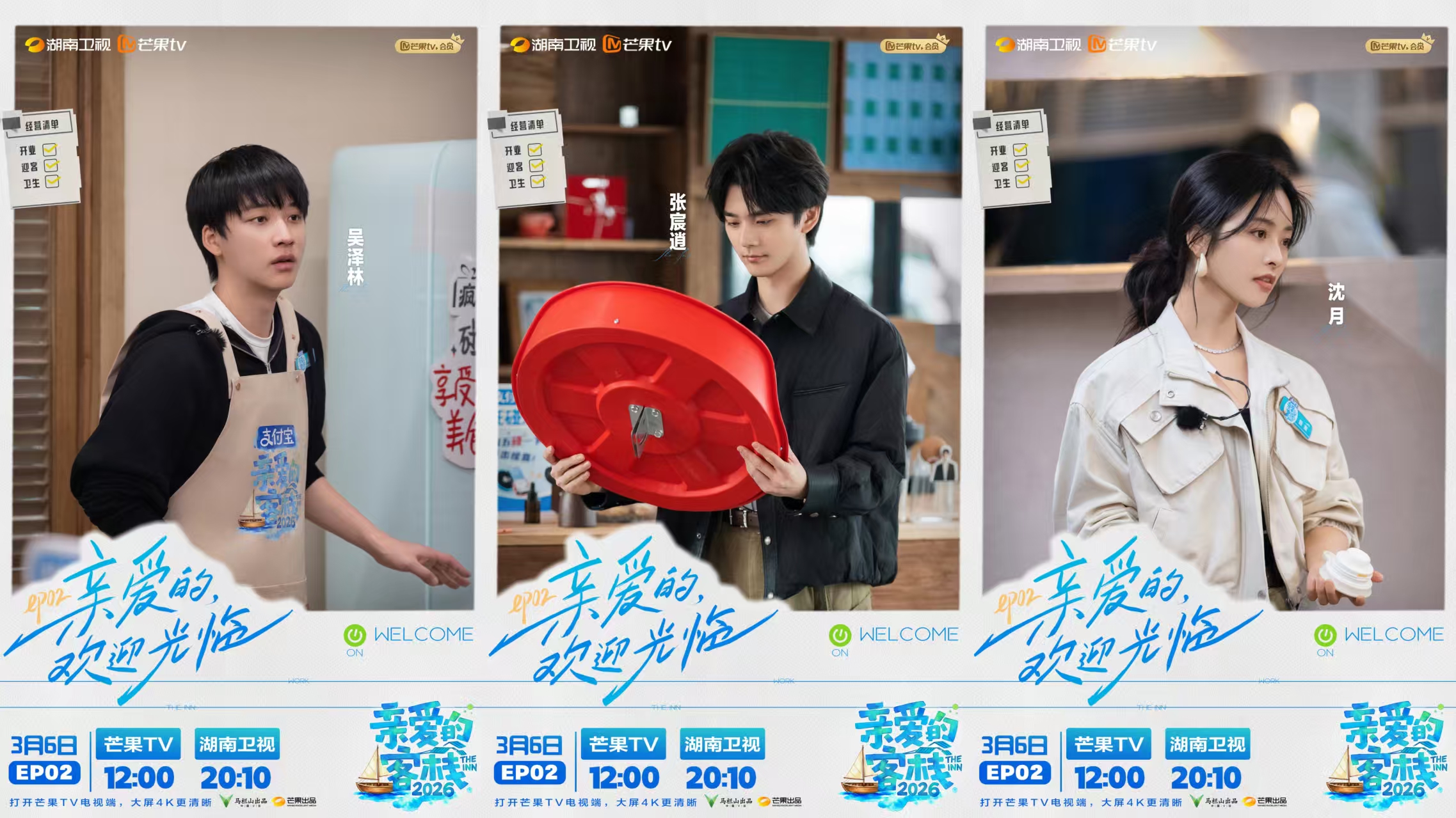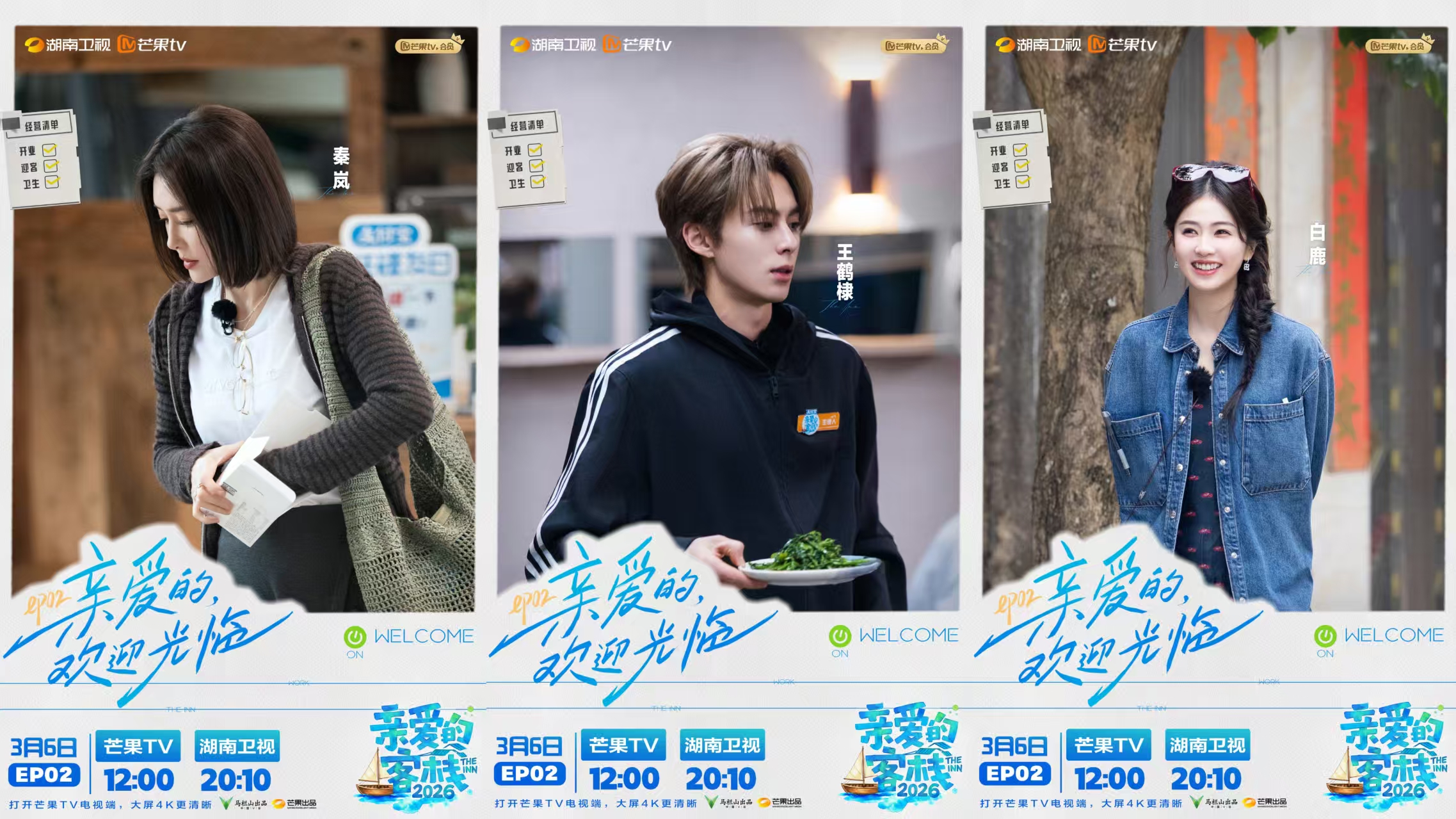 由湖南卫视王鹏飞创新小组、陈震团队联合打造的慢生活治愈系经营体验真人秀《亲爱的・客栈 2026》第二期即将上线。客栈正式开门迎客,首日便状况不断、意外连连,王鹤棣、秦岚、沈月、吴泽林、张宸逍携手惊喜好友白鹿组成的新手经营团,将如何在慌乱中稳住阵脚?