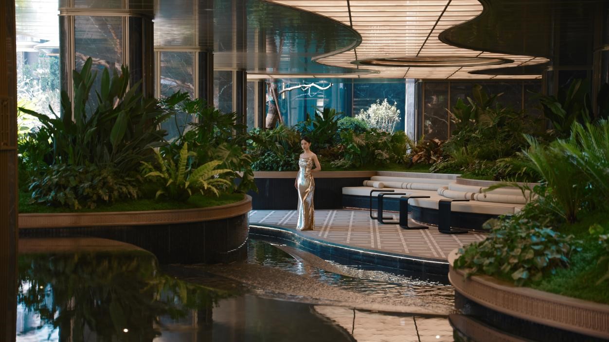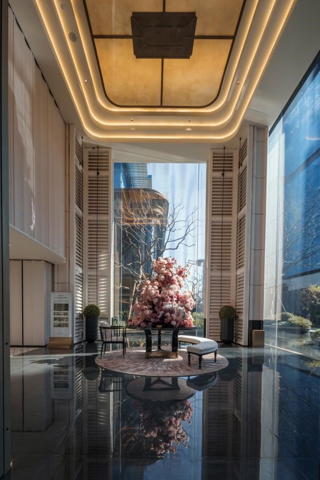 穿过风云连廊,走过序厅花影,抬头就能看见那个悬浮在空中的酒廊。玻璃幕墙把天光云影收进来,你在里面坐着,窗外是流动的城市。“我欲穿花寻路,直入白云深处。”黄庭坚写的是梦境,在邦泰观云,成为日常。