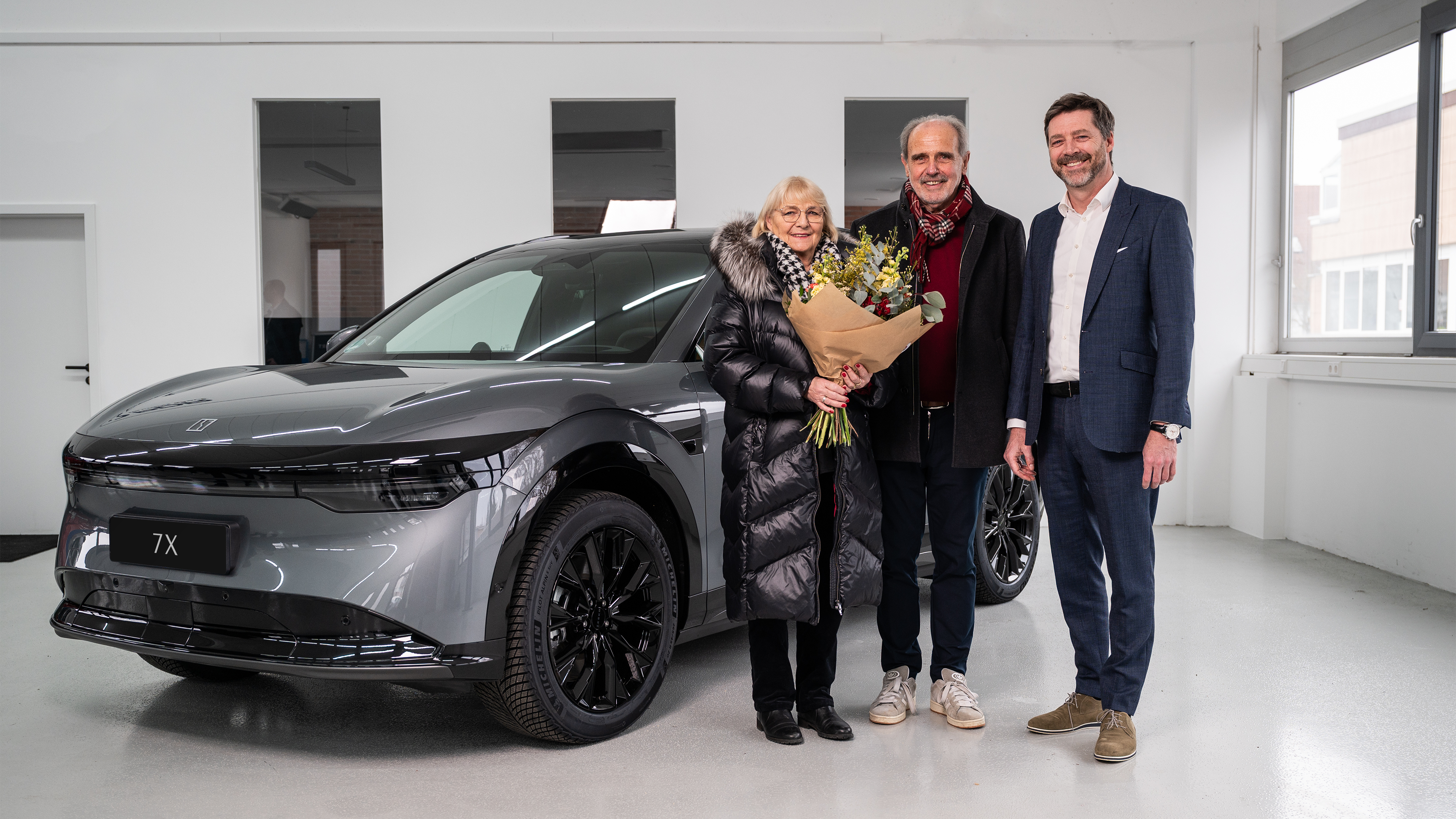 极氪德国负责人Lukas Dohle在斯图加特为首批用户进行极氪7X的交付,首位用户Gerhard Schneider表示:“我对极氪7X完全一见钟情,这是我梦寐以求的一台车。这不是我的第一辆车,但这是第一辆让我无比激动的车。”