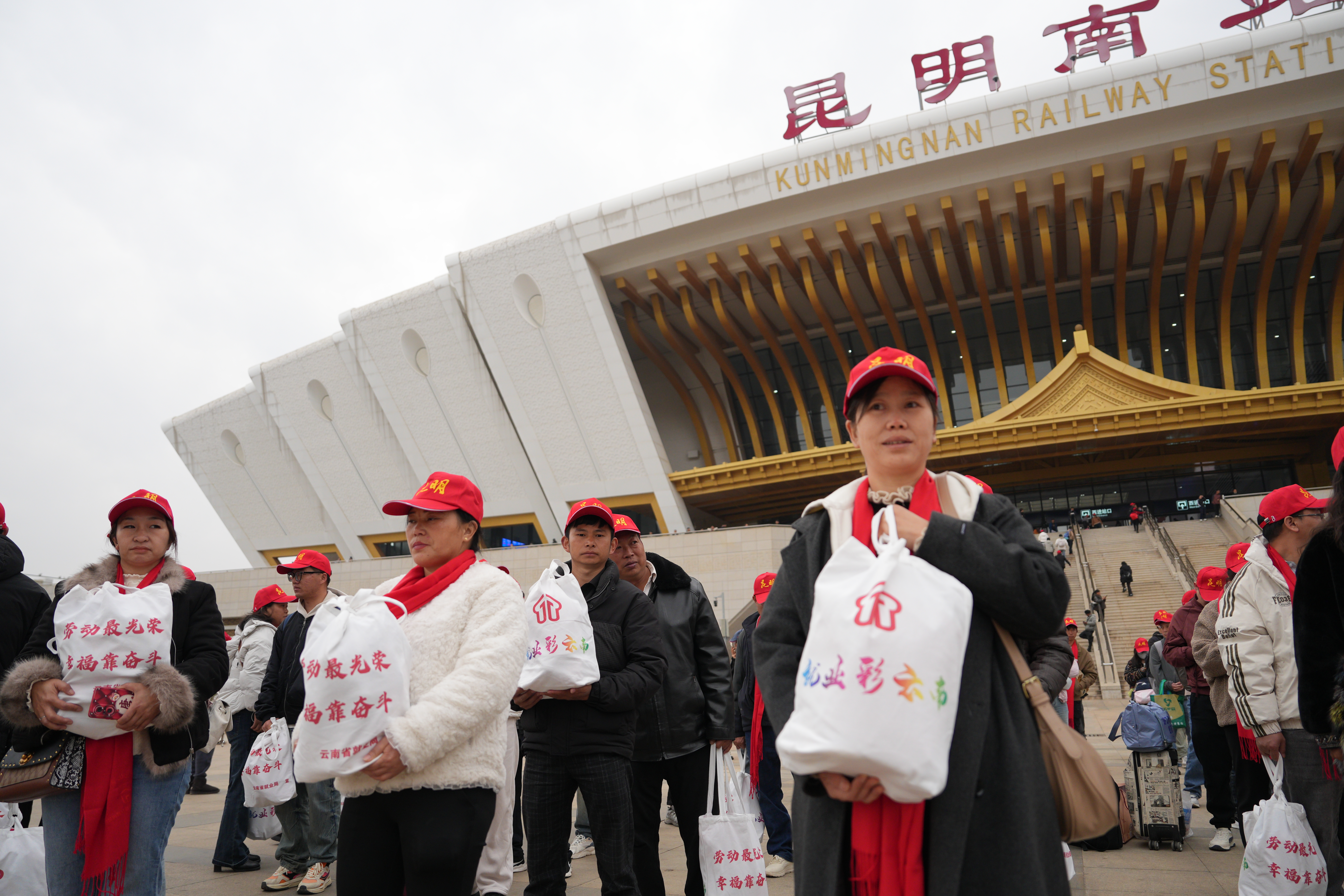 构建航空+专列+专车立体化组织化输送体系,落实“出家门、上车门、进厂门”闭环服务,保障务工人员安全有序返岗。省级在昆明机场设立就业服务驿站,提供优享值机、快速安检、休息补给、交通住宿补贴、暖心礼包等“十免多享”服务,务工出行更有温度。