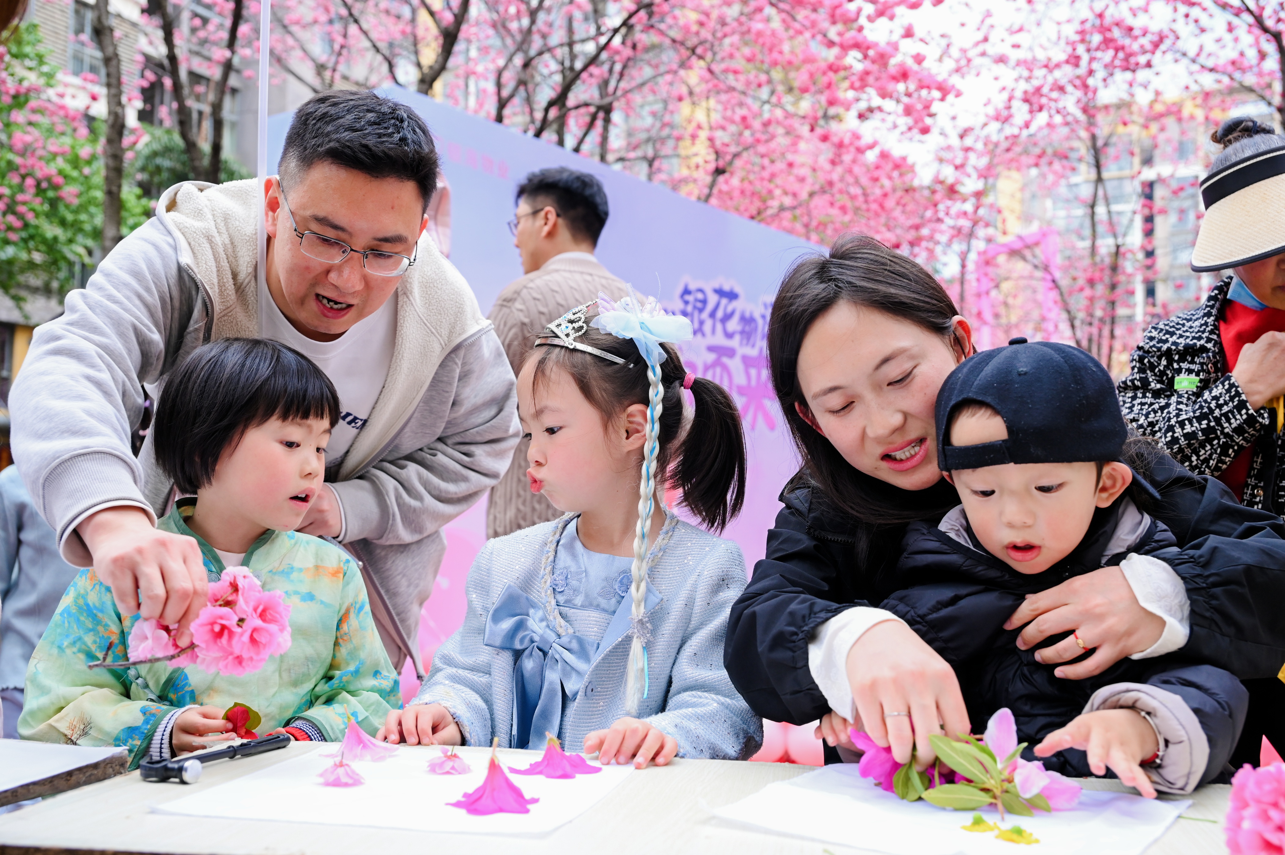 “每年都盼着银海的樱花节,今天带孩子来,他追着花瓣跑,还认识了几个小伙伴,太有春天的感觉了!”带着5岁孩子游玩的李女士笑着说道,手里还拿着孩子刚在现场完成非遗手作。“筷子夹玻珠、乒乓球进框、套圈圈……这些我们小时候喜欢的游园小游戏,如今照样很吸引孩子们,放下手机平板,和小伙伴在户外嬉戏玩耍,特别有意思。”樱花语业主王女士笑道。