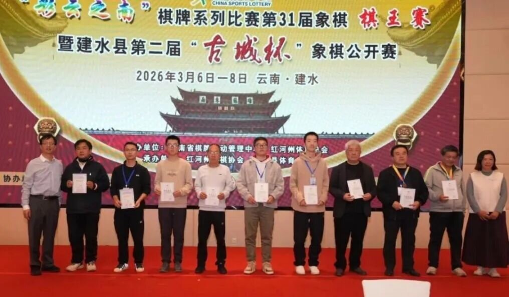 3月8日,为期两天的“彩云之南”棋牌系列比赛2026年云南省第31届象棋棋王赛暨建水县第二届“古城杯”象棋公开赛落下帷幕,来自昭通市的刘祖勇和来自昆明市的吴晴分获男子组、女子组“棋王”称号。