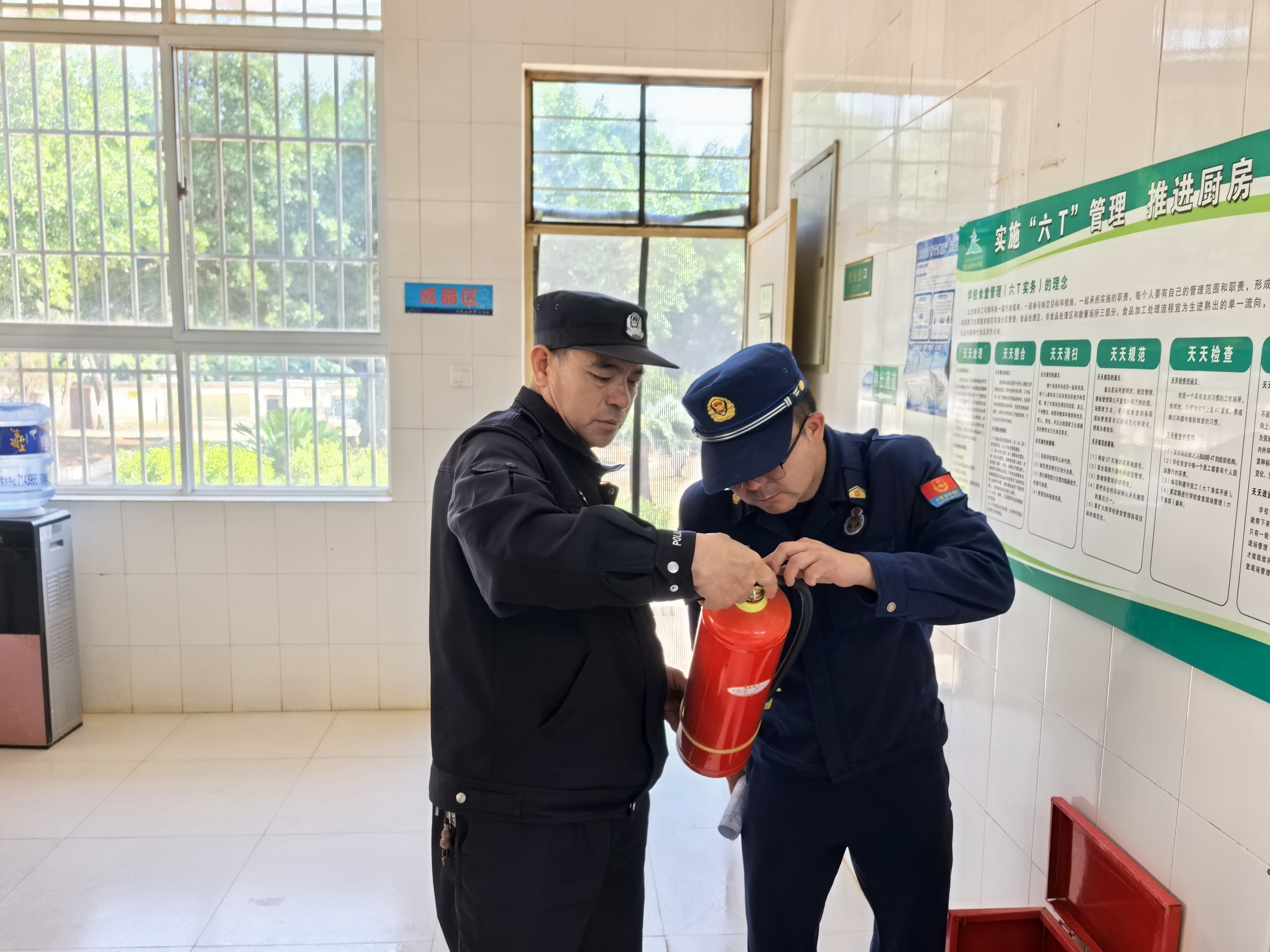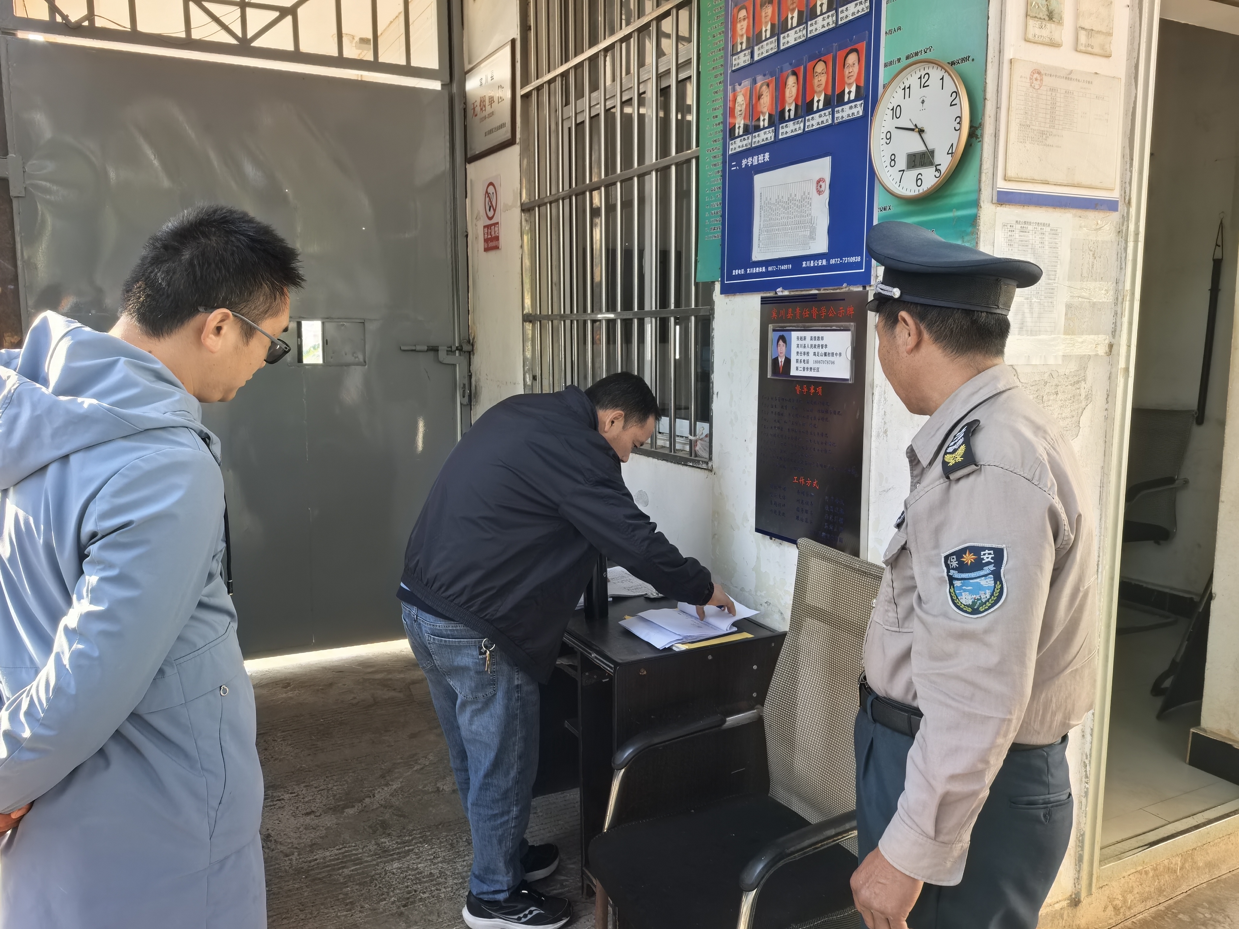 检查组实地查看教学楼、宿舍、食堂、门卫室、校车及校园周边环境,细致检查消防设施、疏散通道、用电安全、食品采购储存、餐具消毒、食品留样、晨午检制度、安保器械、监控与一键报警装置等落实情况,现场查阅安全台账、健康档案、出入登记、应急演练记录,全面排查风险隐患。