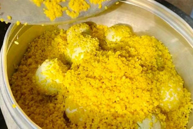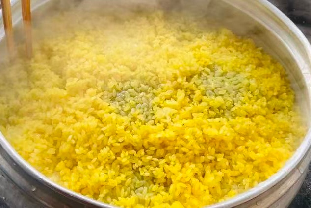 将新鲜采摘的密蒙花洗净熬煮,待花汁与水交融,滤去花渣,便得一盆澄黄的“染饭水”。糯米浸泡其中,渐渐染上暖阳般的色泽,上锅蒸熟后,一锅色泽金黄、香气扑鼻的黄米饭便大功告成。软糯的口感中夹杂着淡淡花香,令人回味无穷。