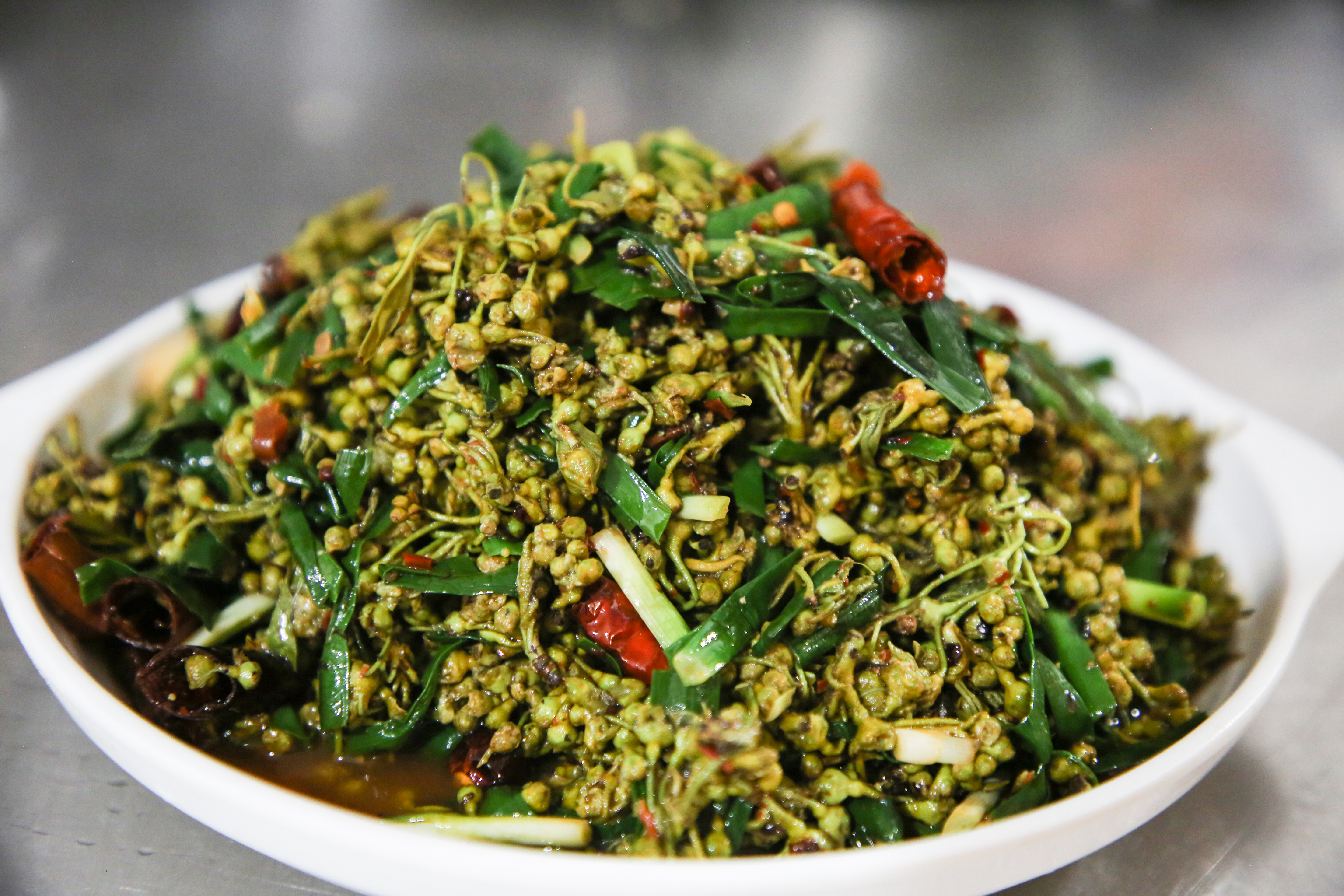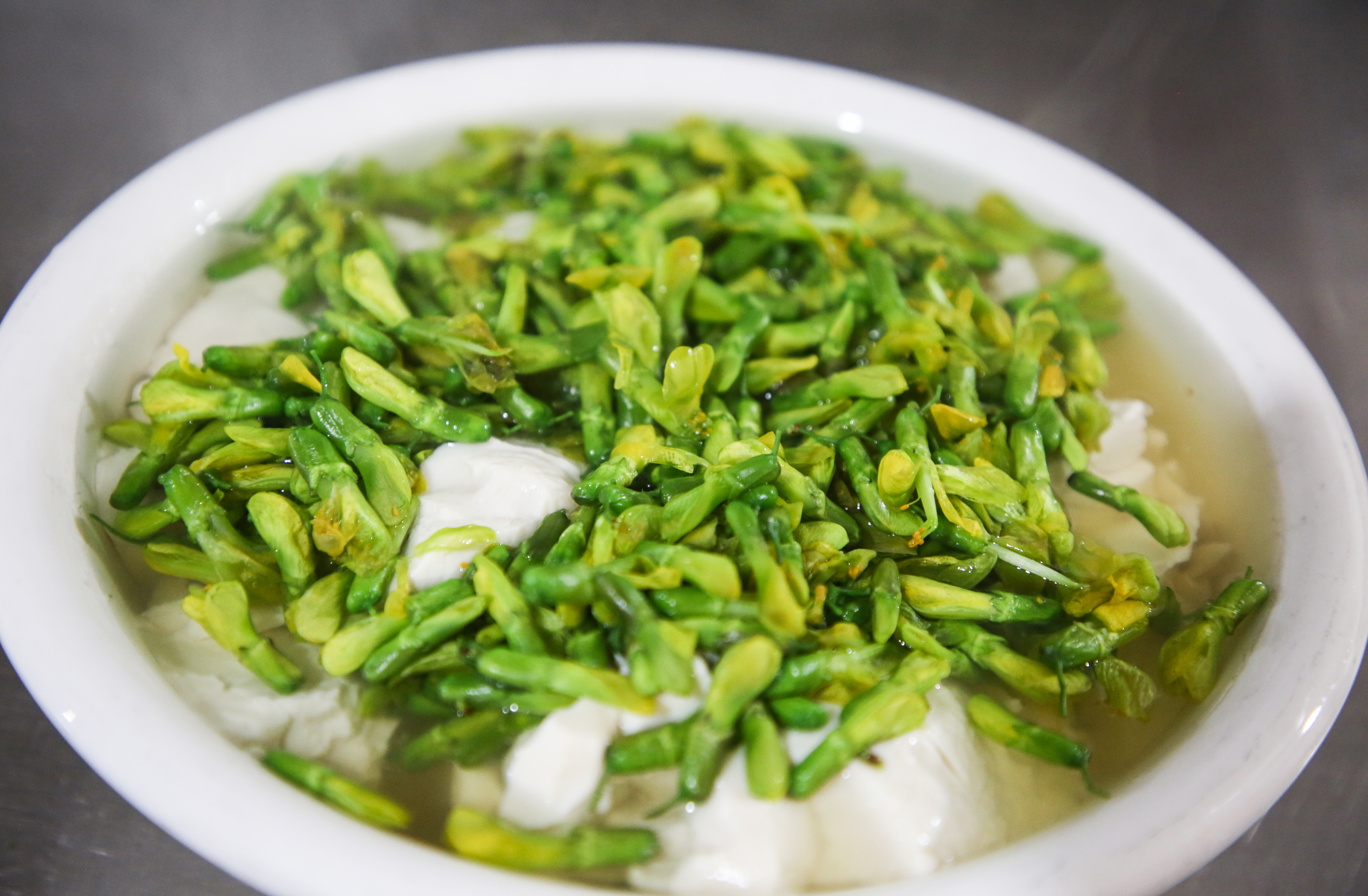 “在我们这里,春天不仅可以赏花,更可以吃花。”杨琼笑着向客人推荐道。她如数家珍地介绍着每道菜的烹饪秘诀:桑葚花只需简单的干辣椒加蒜片爆炒,便能激发出其独特的清香;棠梨花则需与干辣椒和韭菜同炒,软糯中带着韭菜的鲜甜;苦刺花略带苦味,用青蒜和豆豉加持,瞬间化为人见人爱的下饭佳肴。