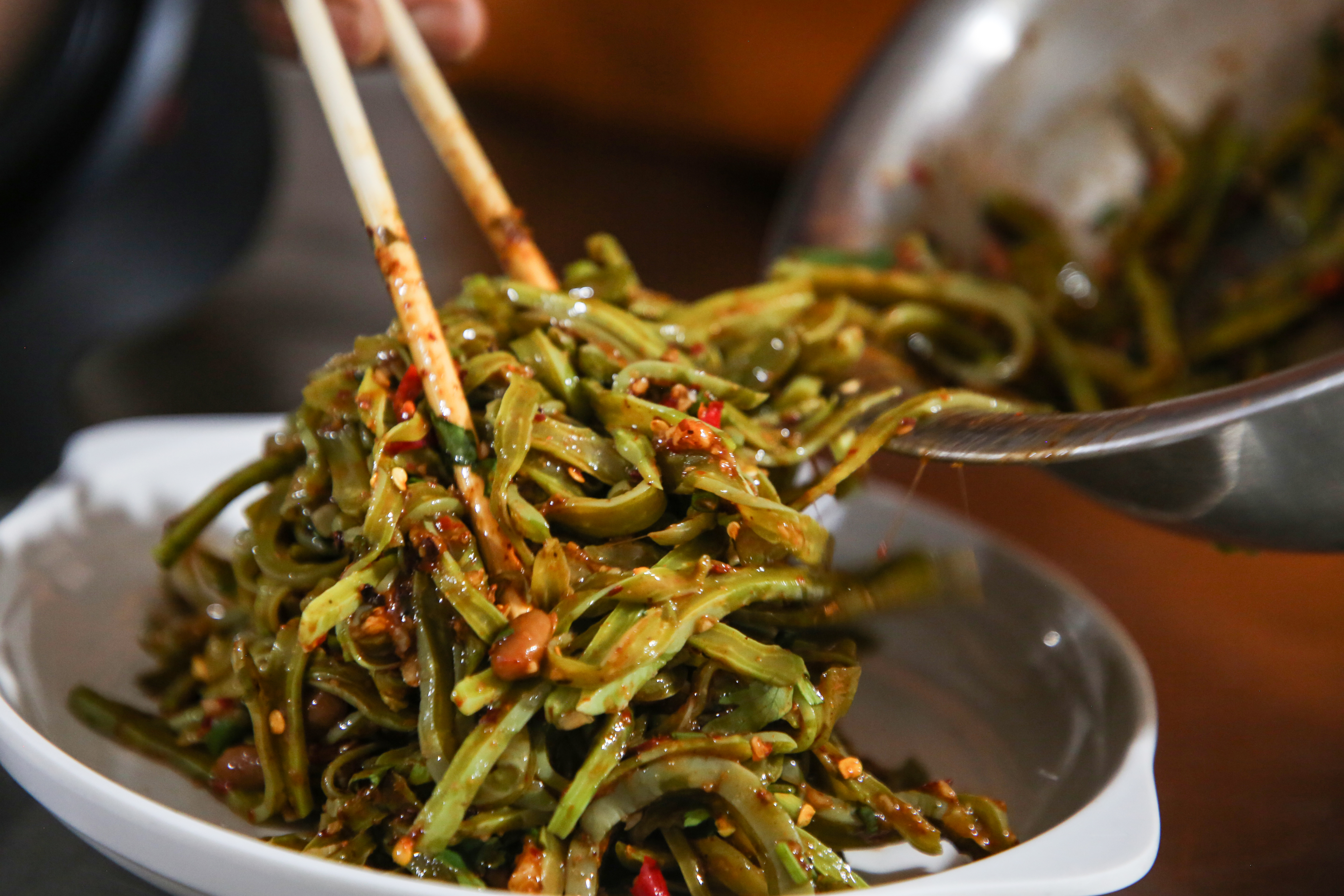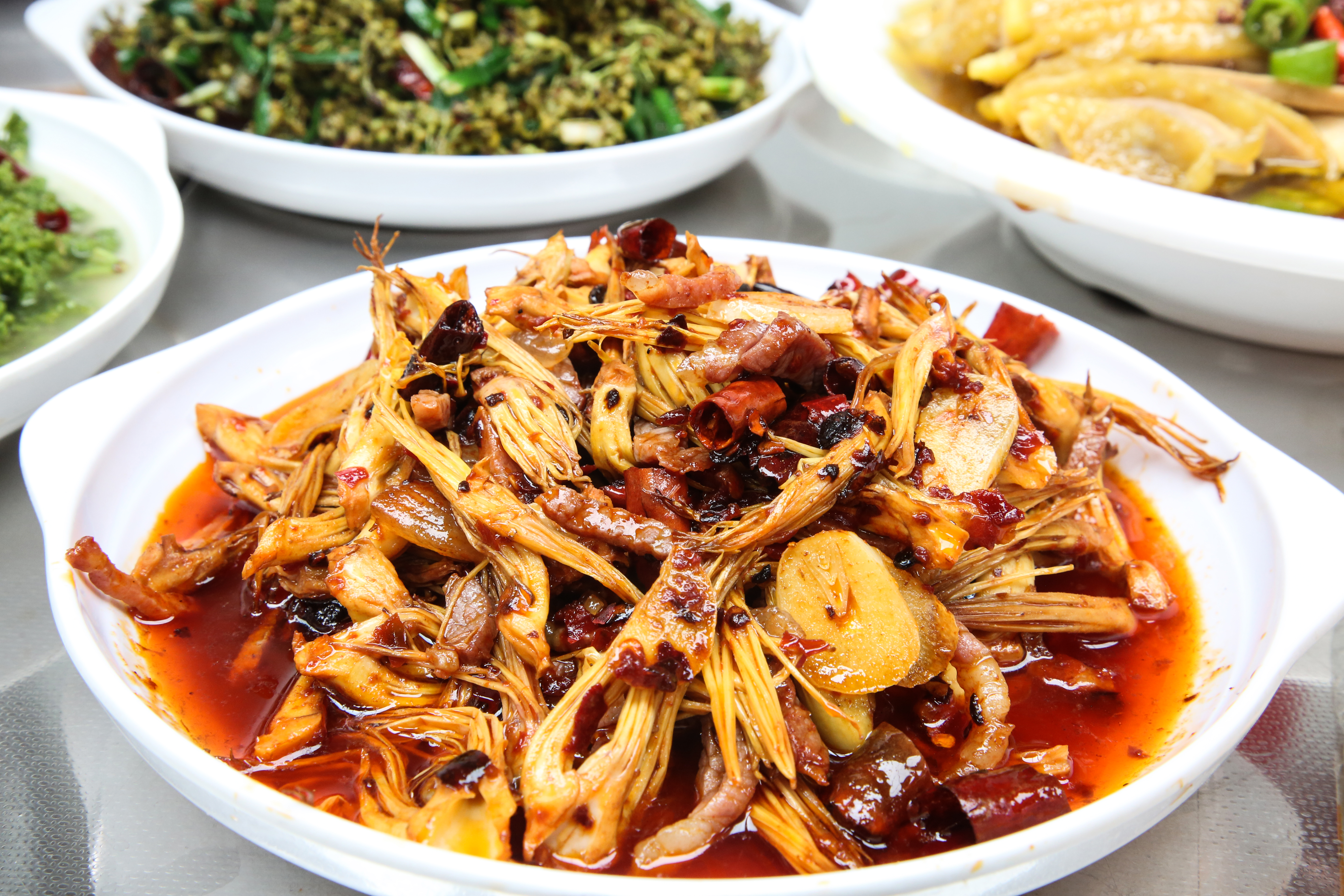 而被称为“树上蔬菜”的香椿,吃法更是多样。无论是经典的香椿炒鸡蛋,还是与鲜嫩的蚕豆一同烹饪,亦或是简单地凉拌折耳根,都能将那股独特的香气发挥得淋漓尽致。此外,还有清爽的凉拌仙人掌、鲜掉眉毛的金雀花煮淡豆花、可素炒可凉拌更可干煮腊肉的蕨菜、口感独特的素炒核桃花,以及咸香适宜的火腿炒攀枝花,每一道菜都凝聚着会泽人民对食材的理解与智慧。