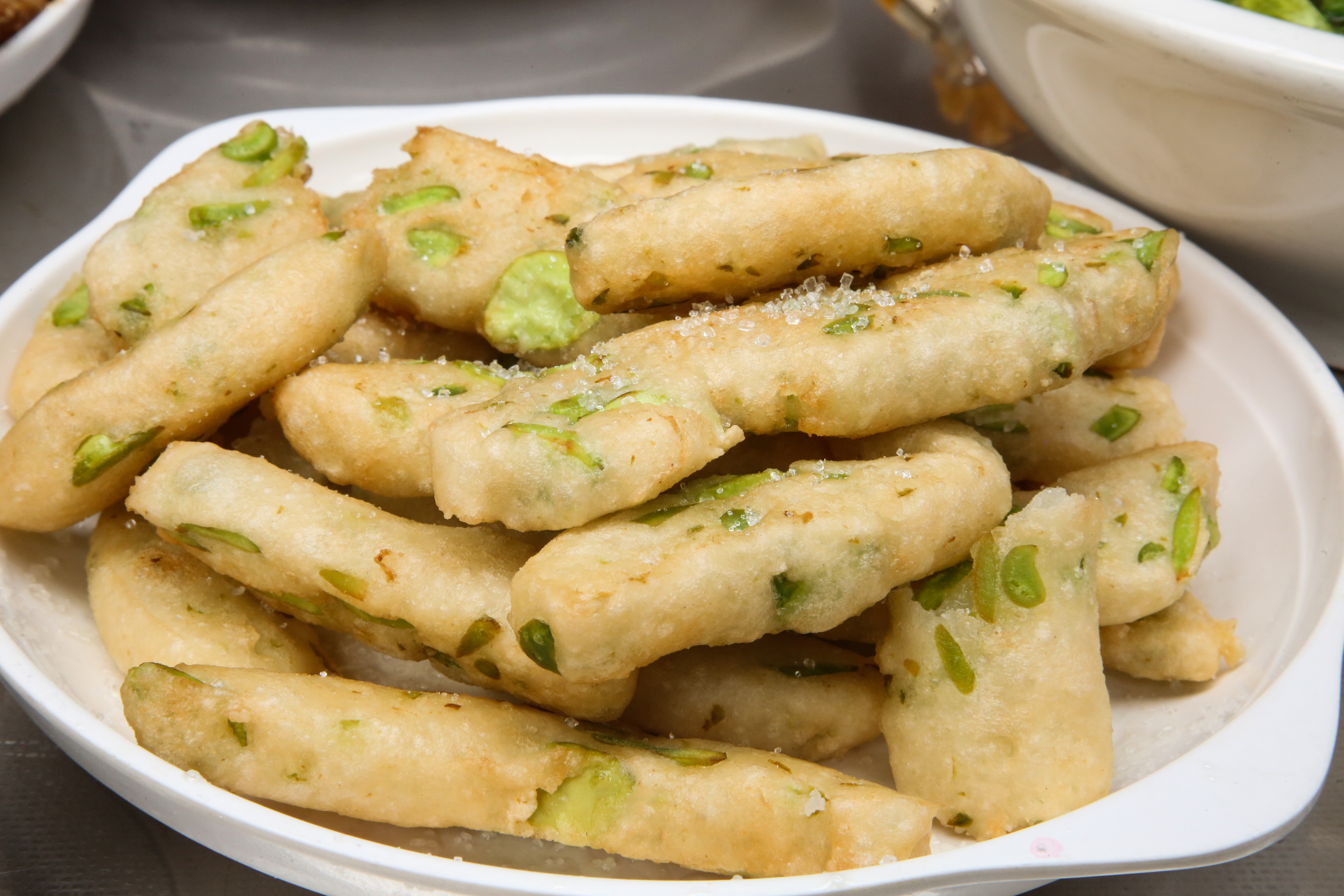 在众多春菜中,最引人注目的莫过于一道名字极具画面感的菜品—— “青蛙爬石板” 。这道充满童趣和诗意的菜肴,其实是娜姑人春季不可或缺的美食。杨琼介绍,这道菜的做法是将当季最新鲜的青蚕豆米(即青蛙)煮熟,然后揉进雪白的糯米面(即石板) 中,定型后切成厚片,放入油锅炸至金黄。出锅后的“青蛙爬石板”外皮酥脆,内里软糯拉丝,翠绿的豆米镶嵌在洁白的糯米中,咬上一口,满满都是春天的味道 。