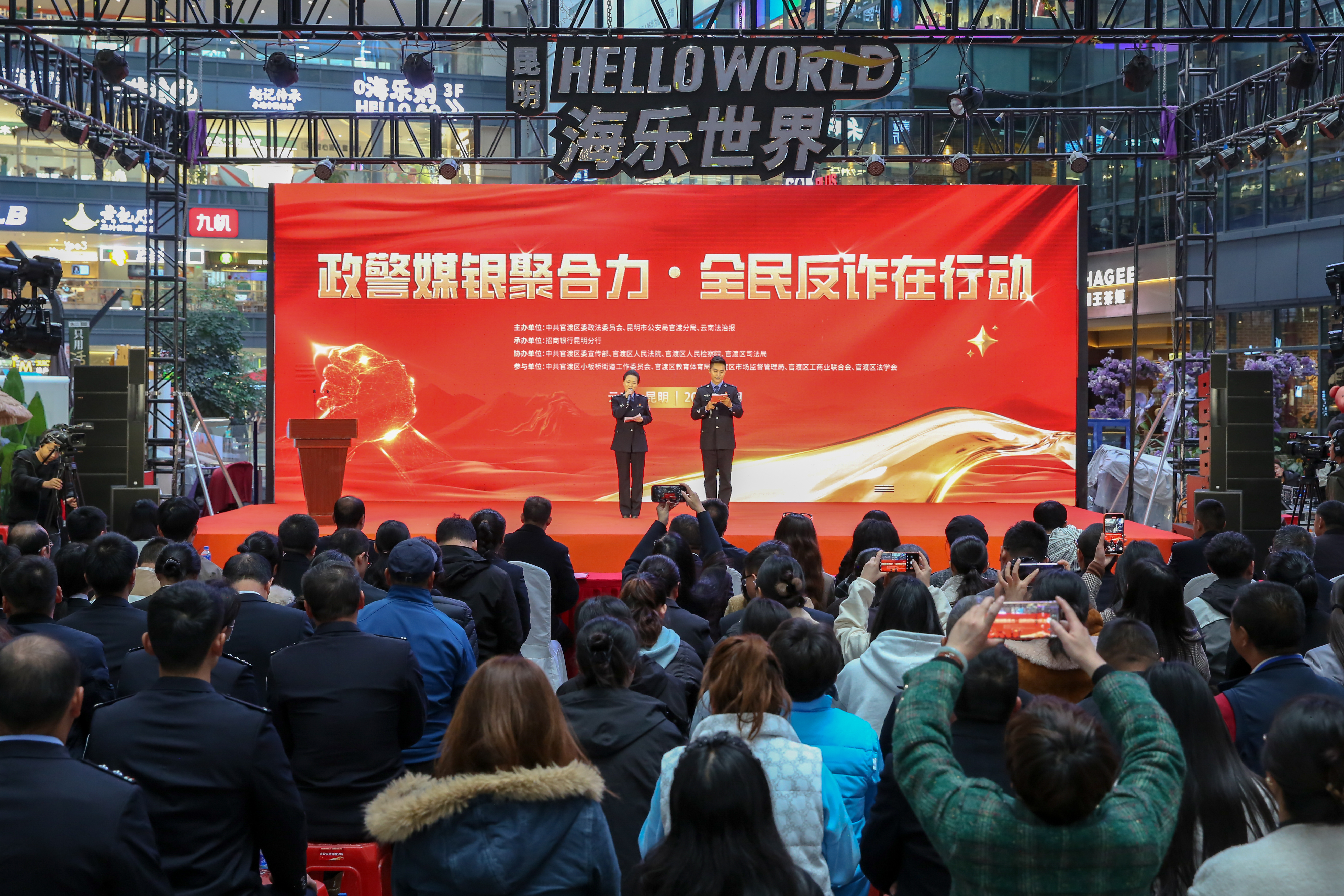 为进一步深化全民反诈格局,切实提升辖区群众防范电信网络诈骗意识和能力,守护人民群众财产安全,3月13日,由昆明市官渡区委政法委、昆明市公安局官渡分局联合云南法治报及招商银行昆明分行等相关部门,共同举办的“政警媒银聚合力·全民反诈在行动”主题宣传活动在昆明市官渡区海乐世界商场举行。