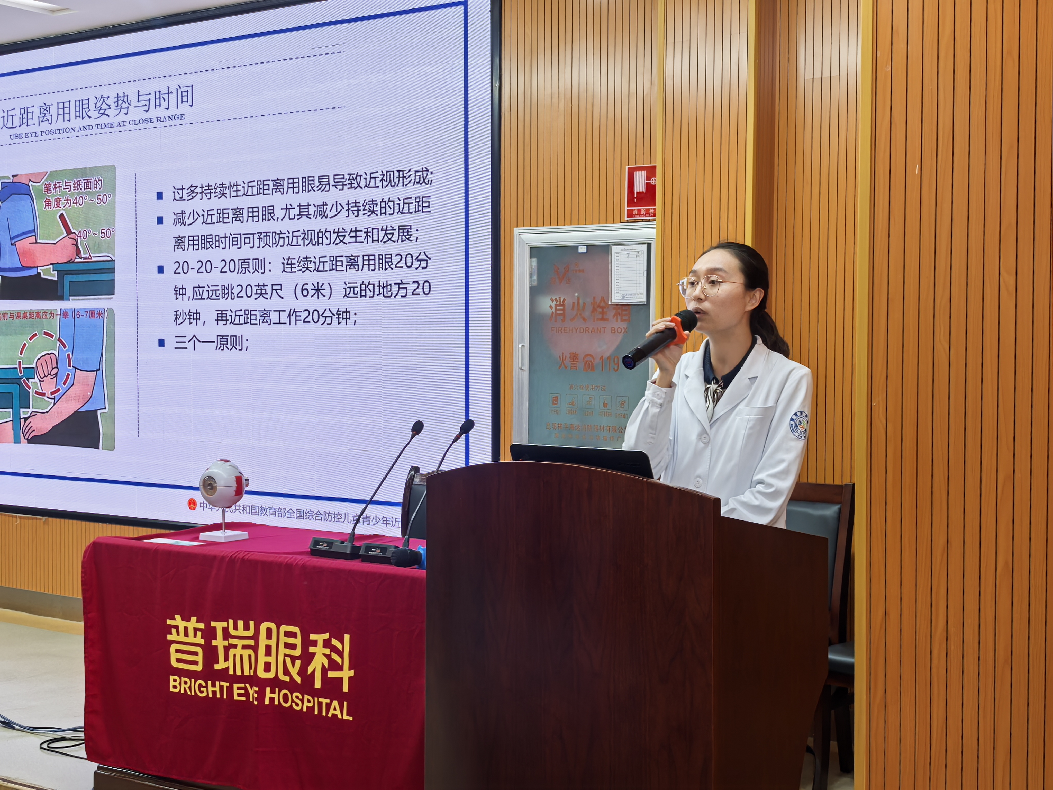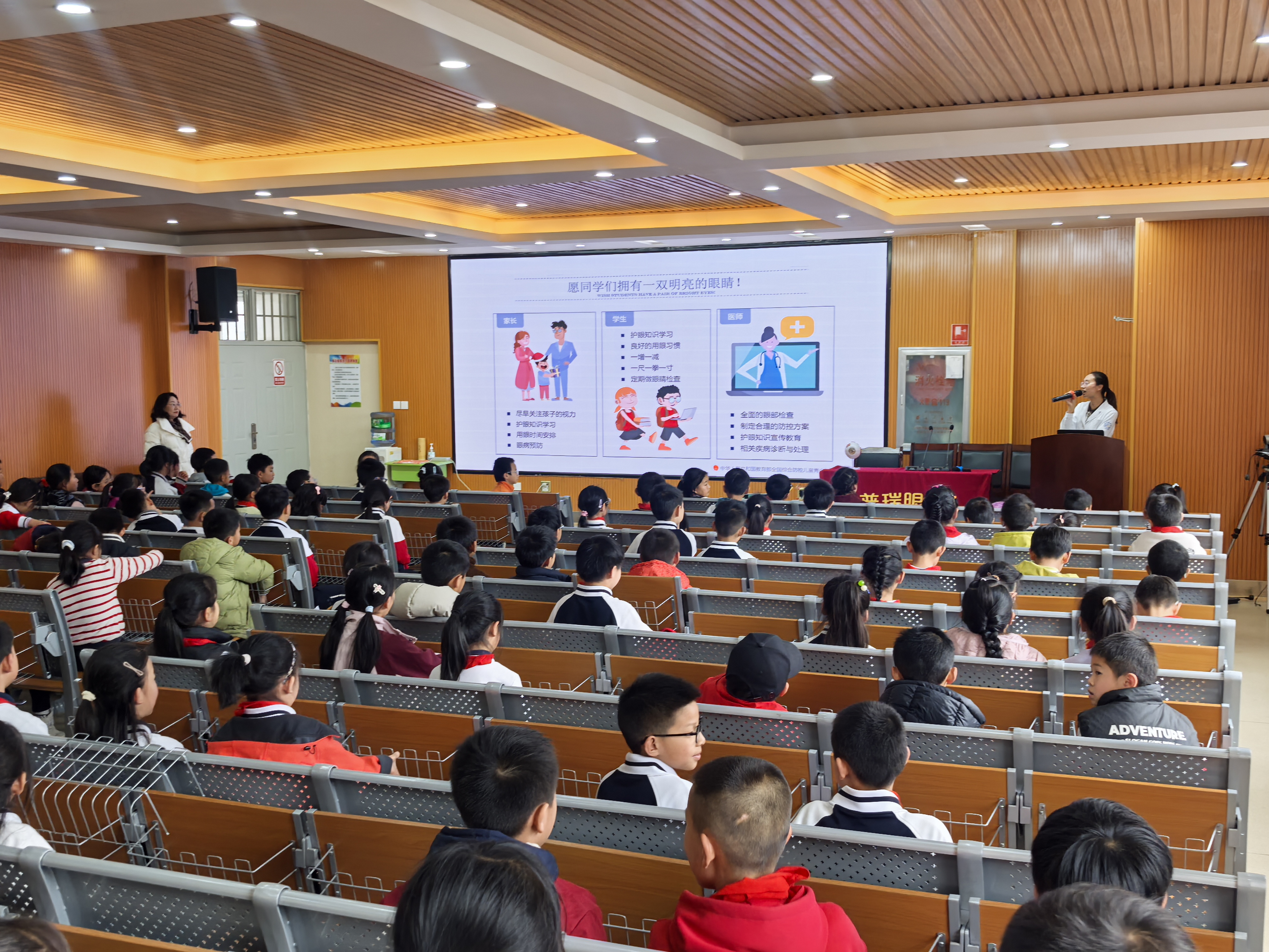 此次讲座特邀昆明普瑞眼科医院视光与儿童眼病专科张思婕医生主讲。课堂上,张医生用孩子们听得懂的通俗语言,讲解了近视的成因、危害和科学防控方法,还通过趣味互动的方式,让孩子们牢记护眼小知识,现场孩子们举手积极、参与热情高涨,在轻松的氛围中收获了实用的爱眼护眼技巧。
