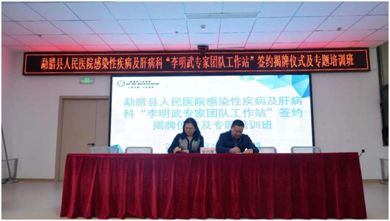为深化医药卫生体制改革,推动优质医疗资源下沉,切实提升边疆地区结核病防治能力,2026年3月13日,昆明市第三人民医院与勐腊县人民医院共建李明武专家工作站签约授牌仪式暨学术讲座,在勐腊县人民医院举行。