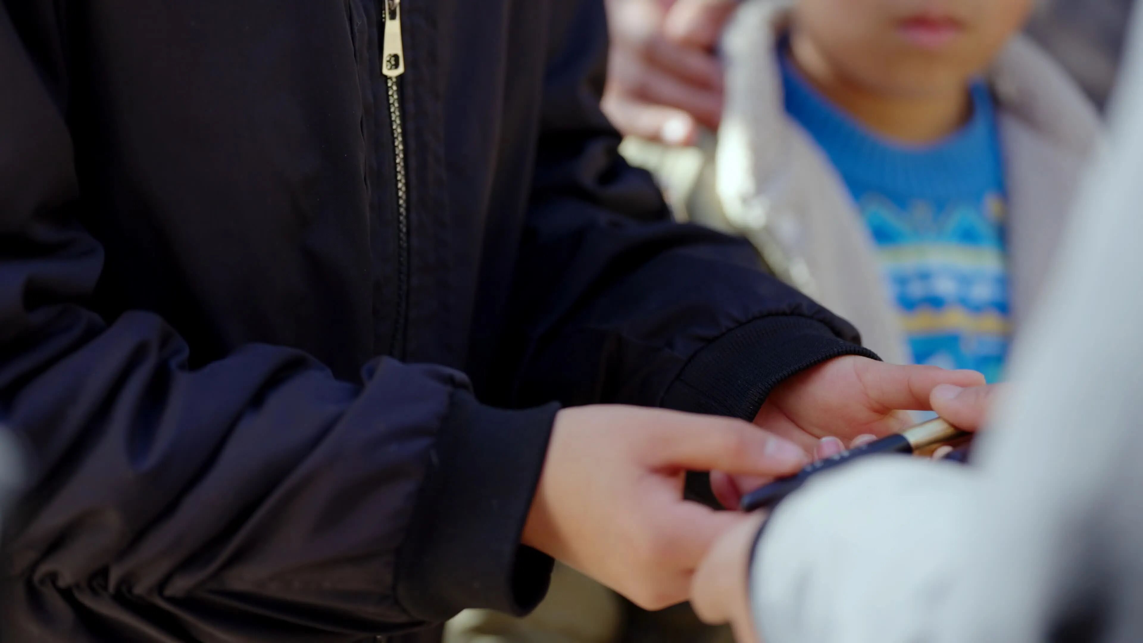 一位女法官将一支崭新的钢笔,郑重放入孩子手中。那只平日签署法律文书的手,此刻动作轻柔而坚定;孩子低头凝视笔杆,指尖触碰的瞬间,仿佛接过的不仅是一件文具,更是一份关于未来的无声期许。