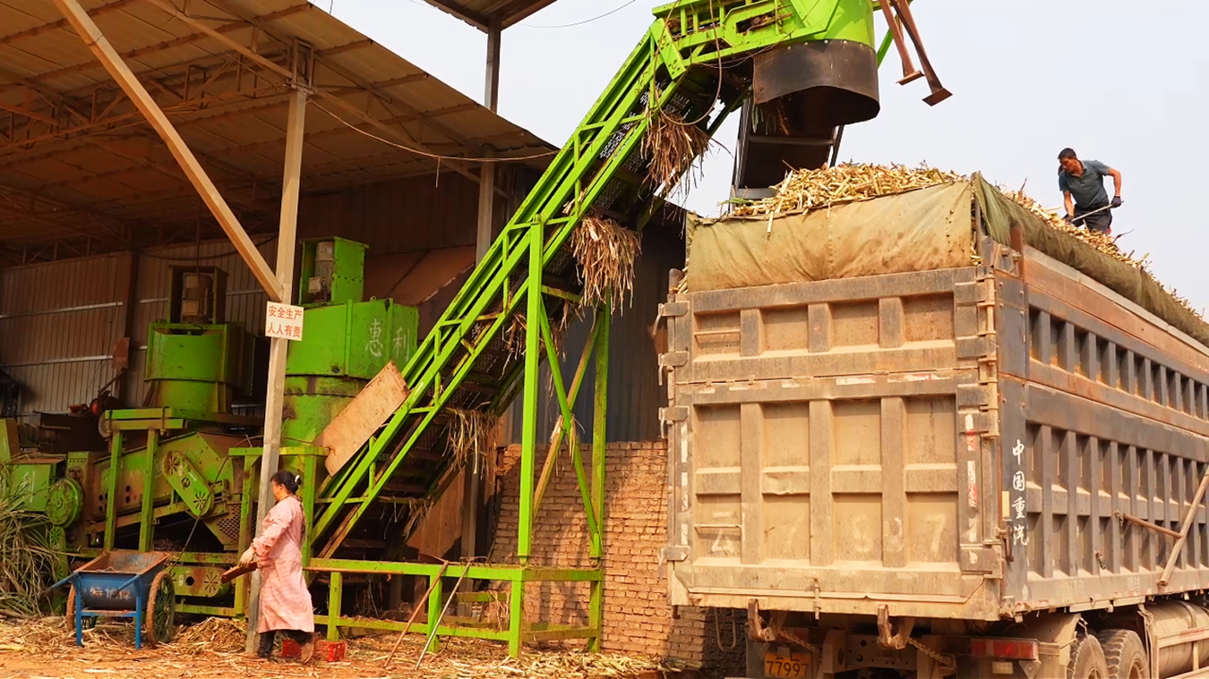 在勐糯,规模化种植已成为主流。蔗农们的底气,来自科技的全面支撑。为了破解山地蔗区“不怕种,就怕砍”的机械化瓶颈,勐糯镇大力推广甘蔗分布式机收。在勐糯镇的甘蔗种植基地里,一台甘蔗分布式剥叶加工设备正在快速运转,彻底改变了传统的砍收模式。云南农垦糖业集团勐糯分公司农务科副科长杨荣专向记者介绍了这台“神器”的优势:“用了这台分布式脱壳站以后,每天能加工120吨甘蔗,节省了60个劳力,每吨降低砍工成本80元。”