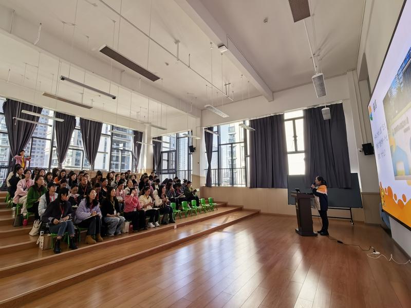 前卫幼儿园副园长徐玉珏带领全体学员参观园所户外环境,详细介绍幼儿园的环境创设思路与园所文化建设理念,让学员们直观体会到环境育人的教育内涵;随后,学员们以6人一组的形式,在全园11个班级流动观摩,近距离观察班级区域游戏开展情况,深入了解班级环境创设的细节与特色,感受幼儿在自主游戏中的成长;接着,她以《以研训赋能 助专业提升 促品牌建设》为题对学员们进行专题分享,结合前卫幼儿园的办园实践,从研训体系构建、教师专业成长等方面进行经验分享,为参训学员提供了可借鉴的实践路径。