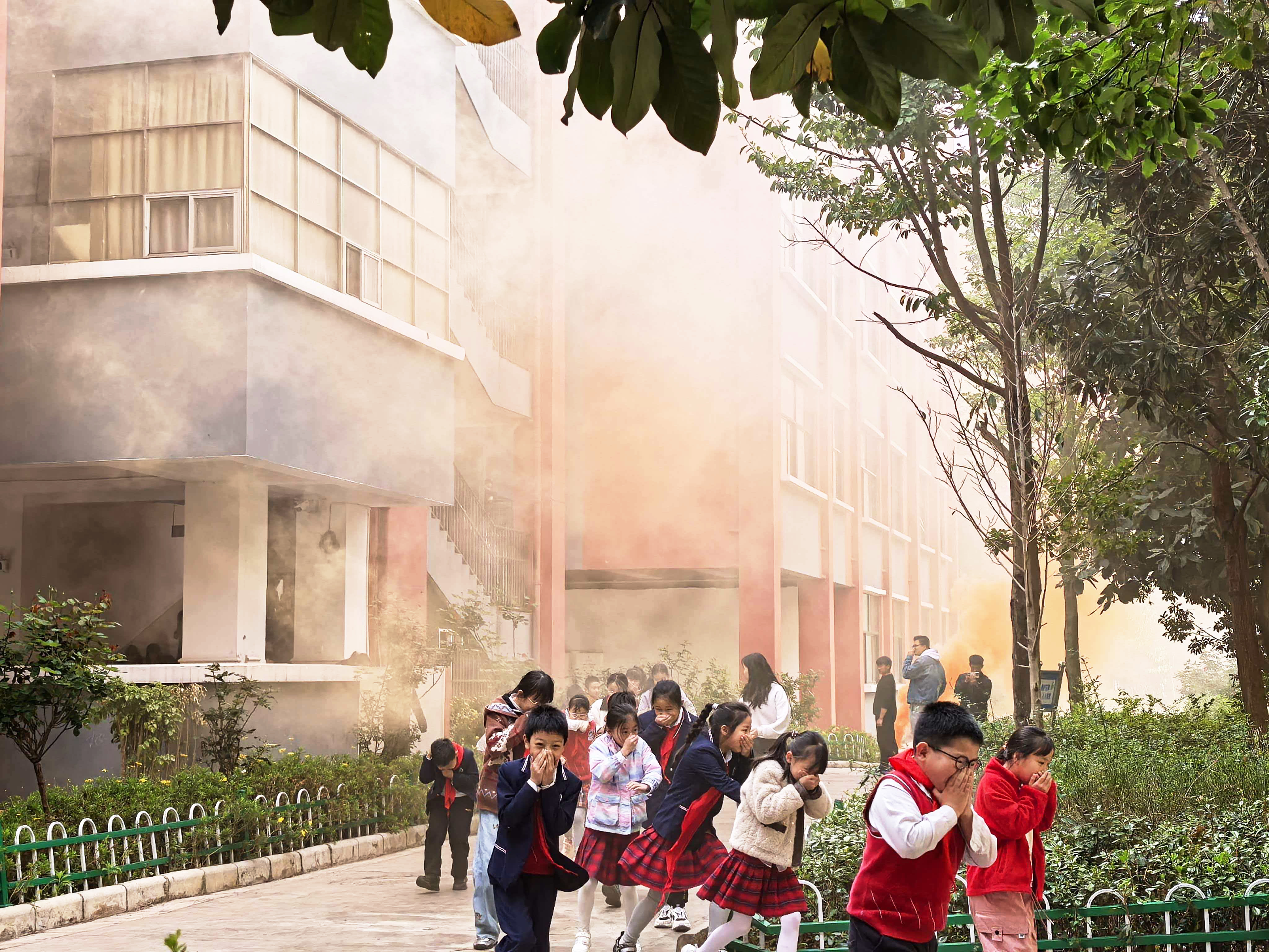 警报响起的那一刻,正在上课的师生们迅速反应。老师立即组织同学们迅速反应,大家弯腰低头,用湿毛巾或衣袖紧紧捂住口鼻,沿着学校预设的疏散通道,快速而有序地撤离教学楼。短短几分钟内,全体师生便安全集结到操场指定区域,整个过程忙而不乱,没有出现拥挤、踩踏现象,达到了预期的演练效果。