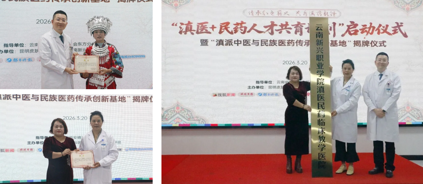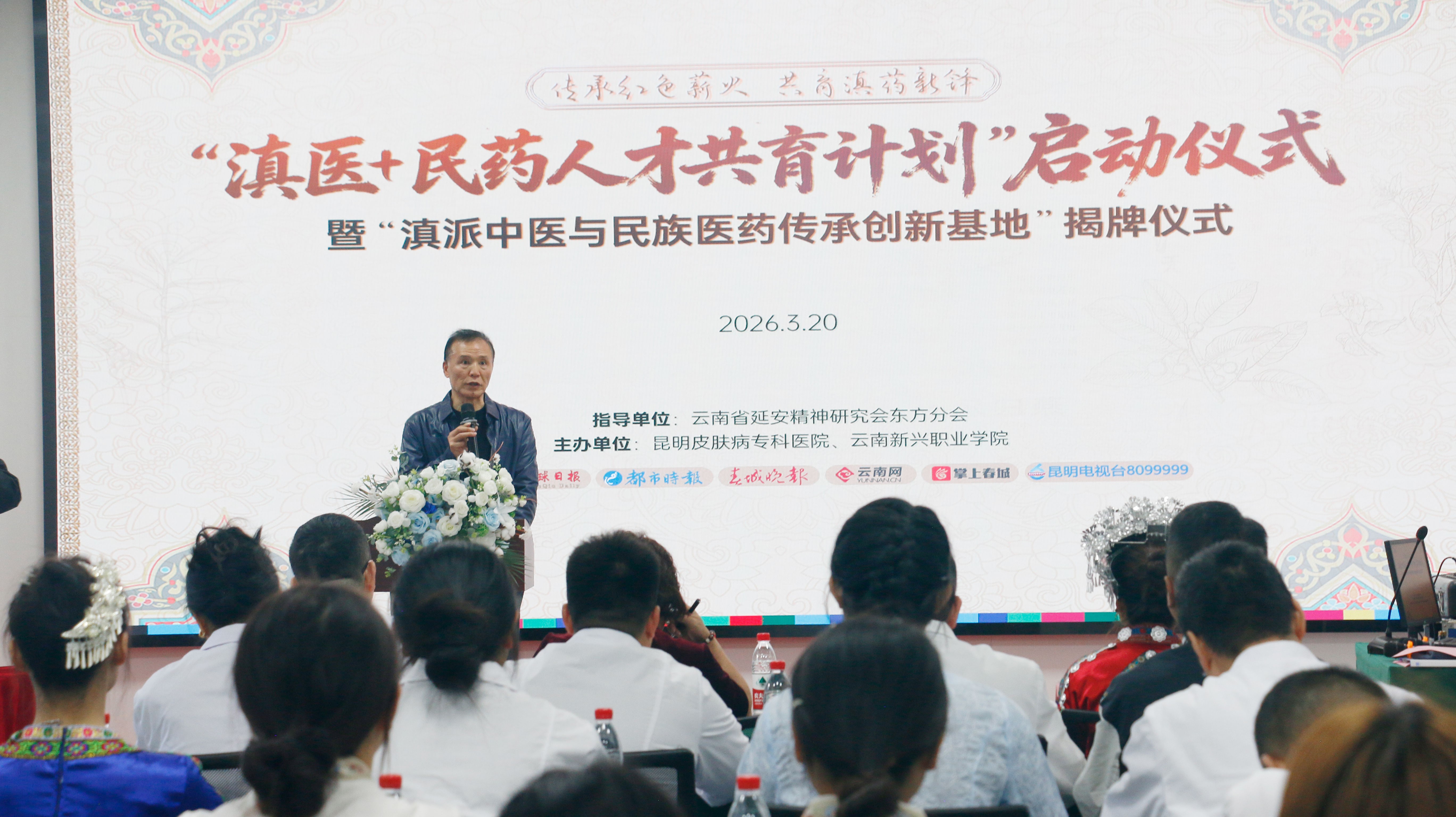 3月20日,“滇医+民药人才共育计划”启动仪式暨“滇派中医与民族医药传承创新基地”揭牌仪式在昆明皮肤病专科医院举行。活动由医院与云南新兴职业学院联合主办、云南省延安精神研究会东方分会指导,开启了滇医民药融合、校院协同育人的全新篇章。