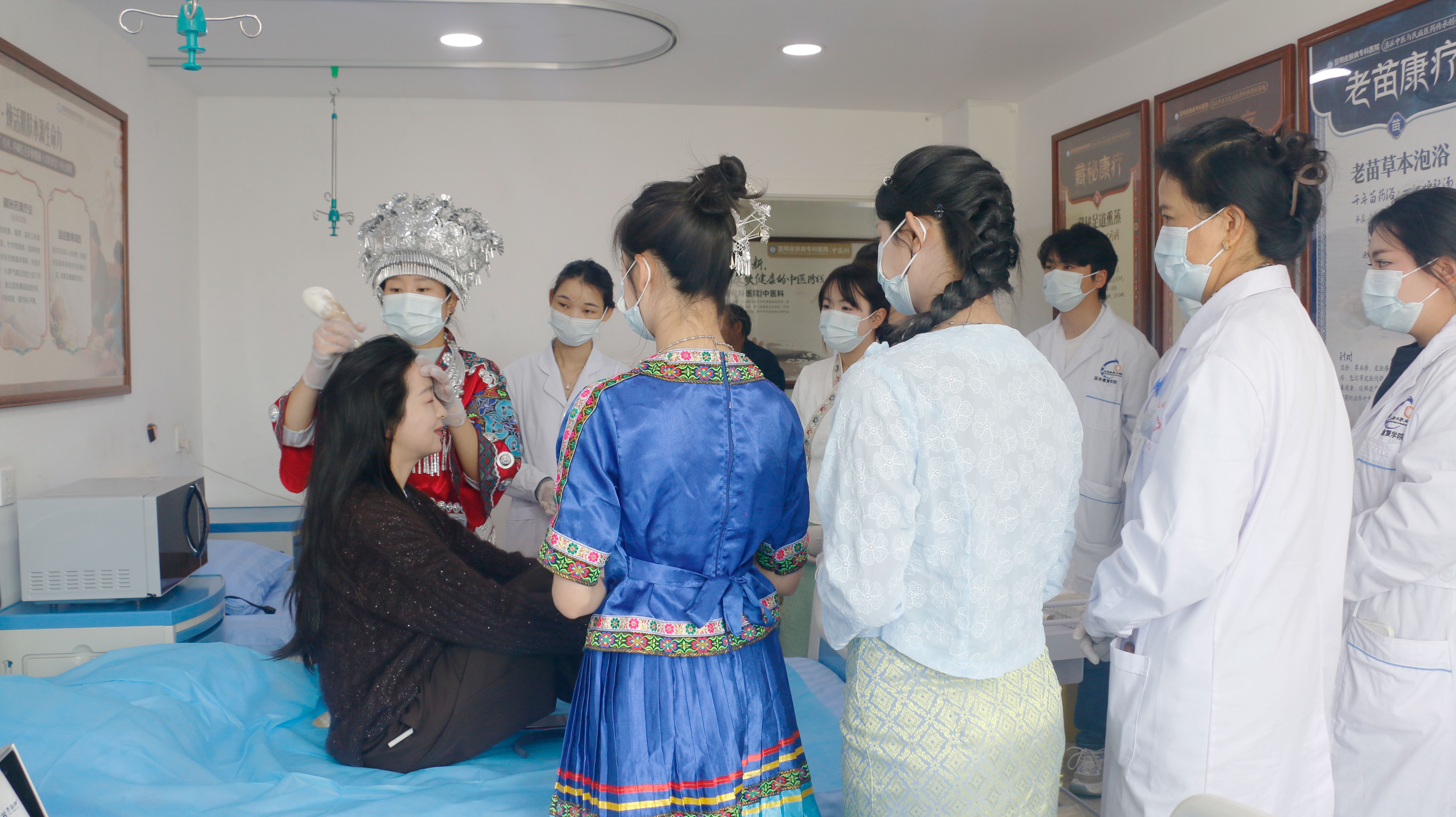 仪式结束后,校方“民族医药馆”沈明老师为医院临床医护开展了藏秘药熏、老苗头疗、壮医药罐、傣雅悬磁灸等特色项目的技术实训,昆明皮肤病医院“皮科经络针灸室”罗树华主任为该校学生同步开展针灸、艾灸等中医外治教学。
