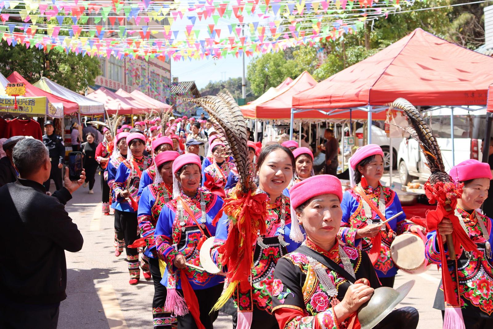 春潮涌动花鼓响,锦绣彝绣映山红。农历二月初二,双柏县安龙堡花鼓文化活动如期而至。今年活动以“非遗+”为核心,在铿锵花鼓声中,彝绣成为最亮眼的文化符号。从展馆精品到街巷风景,从静态展示到动态演绎,彝绣以多元姿态贯穿花鼓文化活动全程,让古老非遗可看、可触、可体验,让这场非遗盛宴“绣”色可餐。