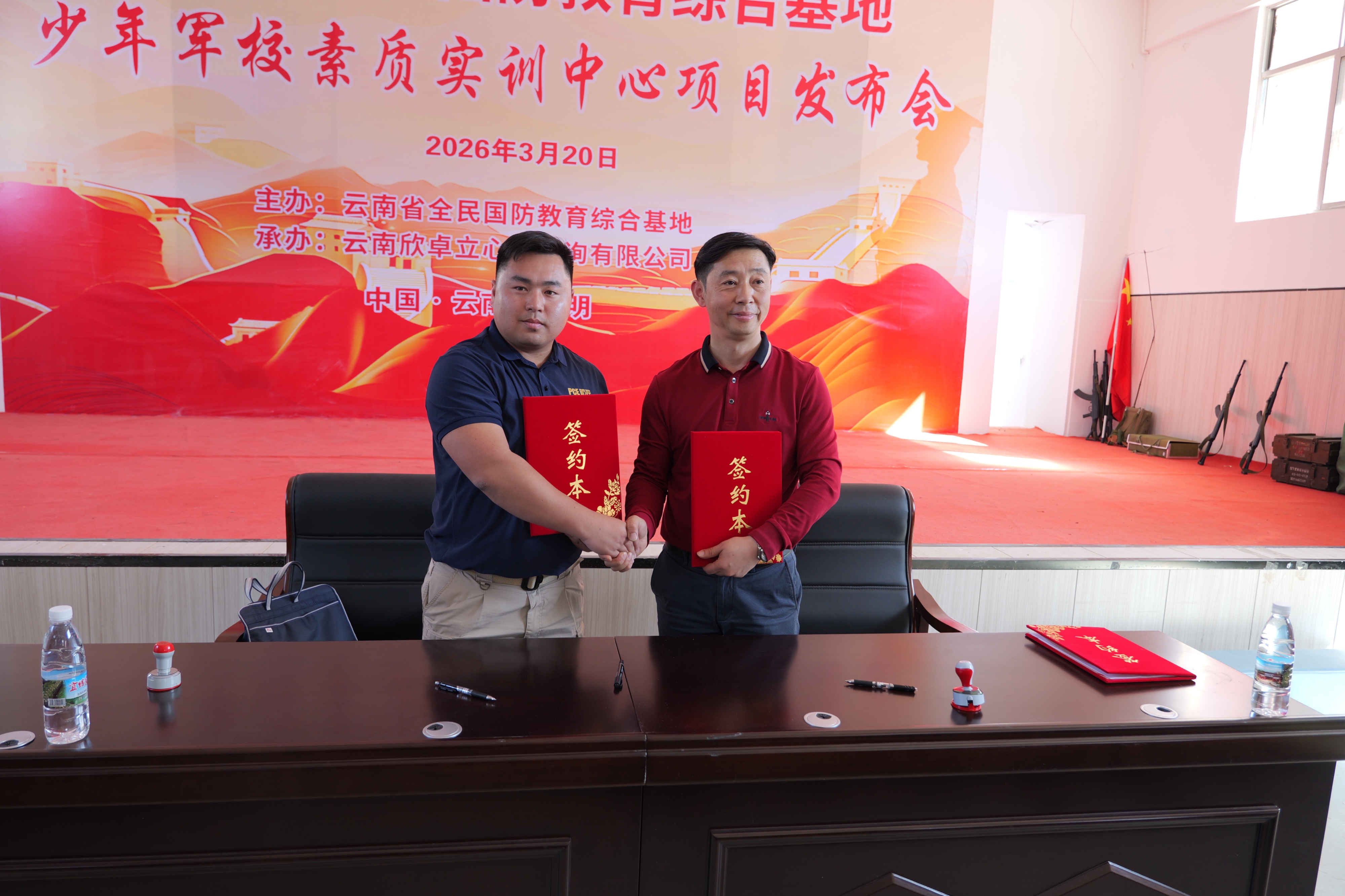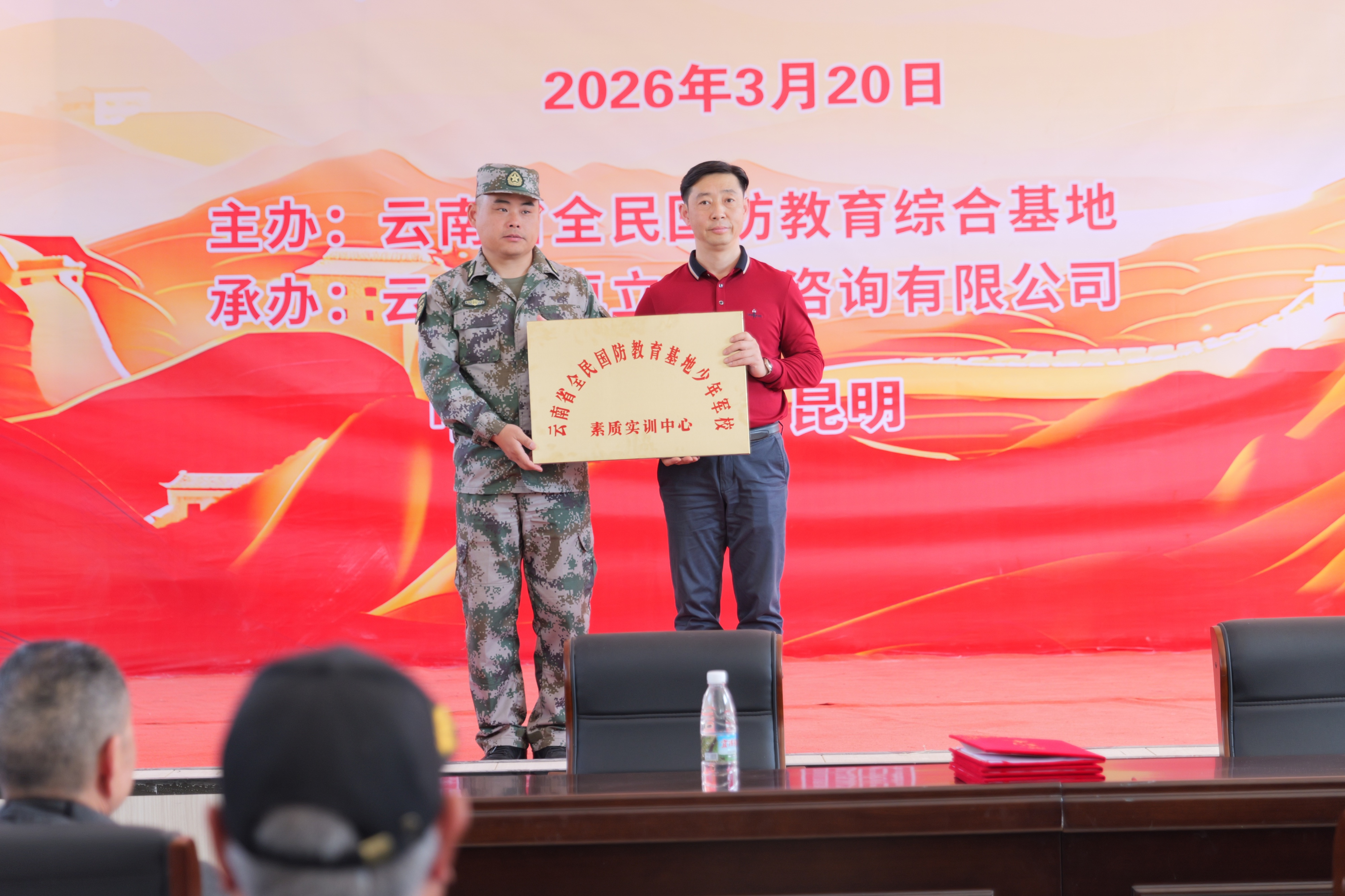 3月20日下午,云南省全民国防教育综合基地少年军校素质实训中心在昆明市宜良县五星社区81号正式揭牌。