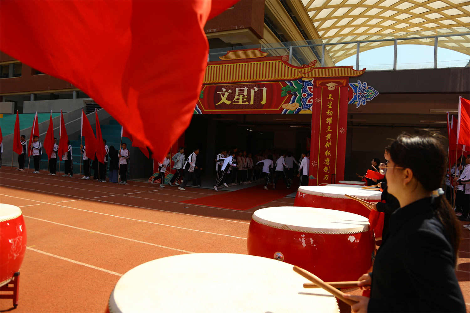 仪式尾声,全体初三学生列队走向“文星门”。王宇伟亲自敲响战鼓,学生们在鼓点中迈步前行。他们穿过由学弟学妹组成的助威队伍,接过写满祝福的信件,一步一跨,进入“文星门”。一旁观礼的家长望着孩子的背影,有人悄悄抹去眼角的泪。