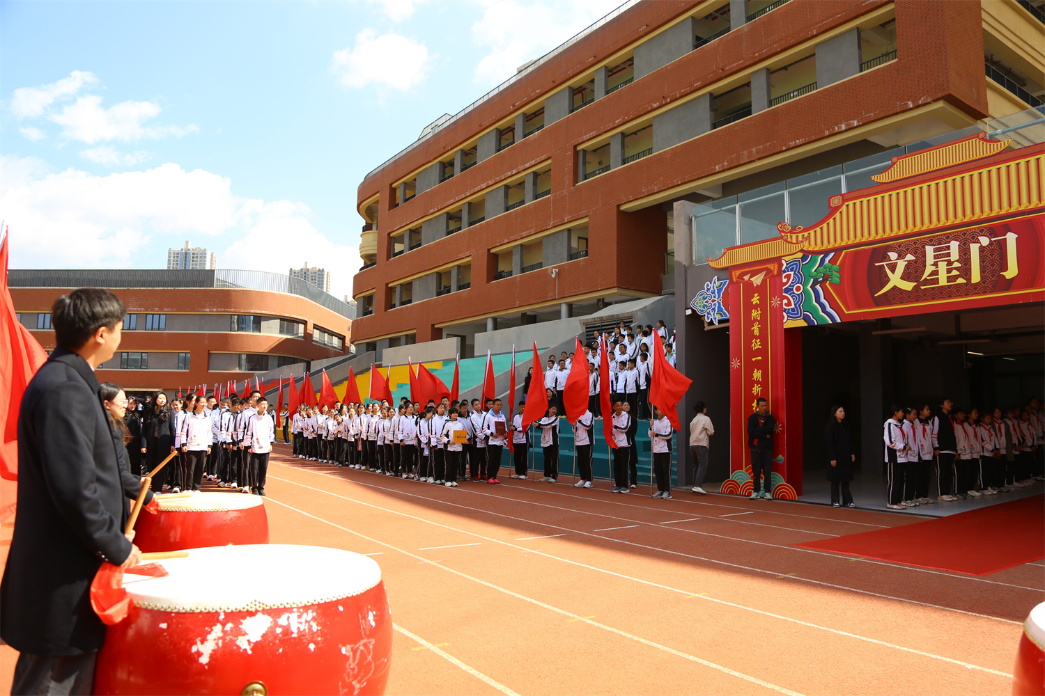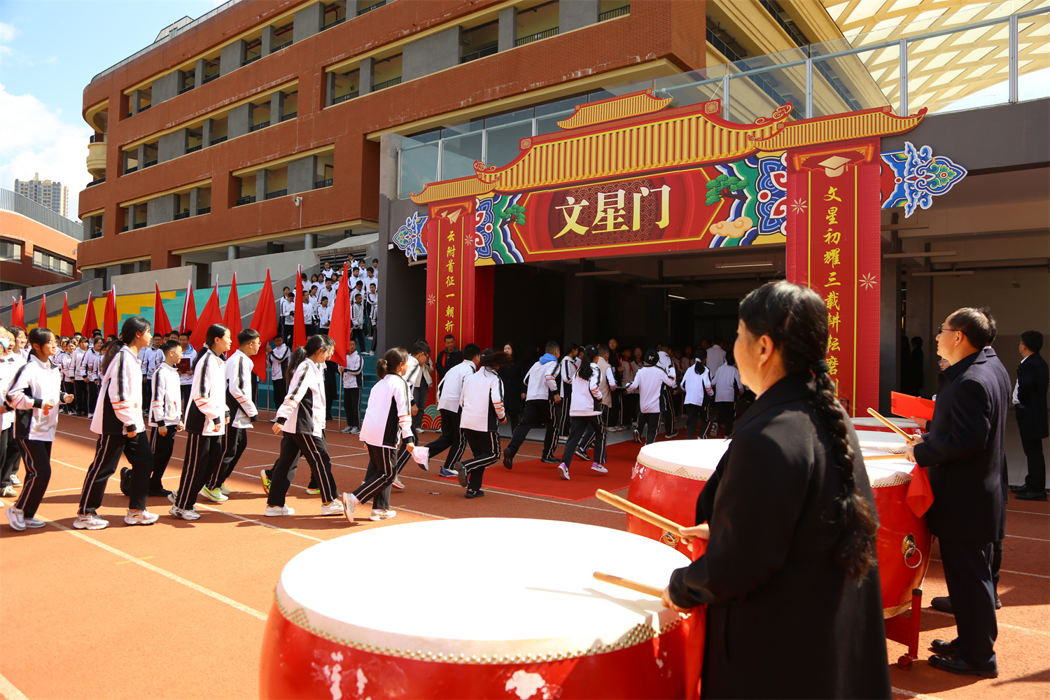 2026年3月23日上午,云大附中西山学校操场旁,“文星门”前红旗招展。鼓声阵阵,该校首届初三学子依次穿过“文星门”,身旁是学弟学妹的助威声,身后是家长微微泛红的眼眶。