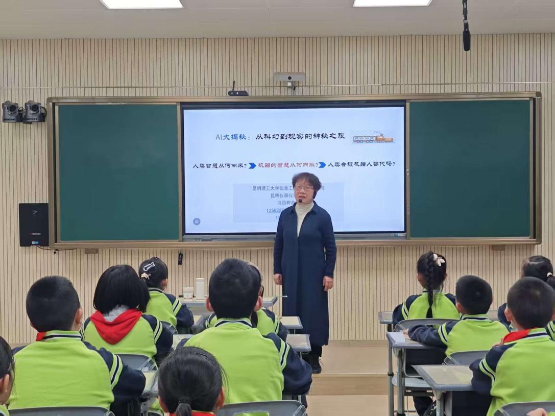 3月19日,西山区崇新小学特邀昆明仪器仪表学会理事长冯丽辉教授,开展了一场生动有趣的人工智能主题科普讲座。全校师生代表共同走进人工智能的奇妙世界,探索人类智慧与AI交融的奥秘。