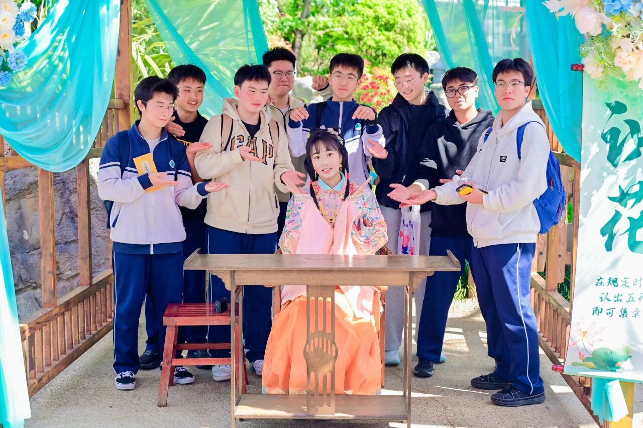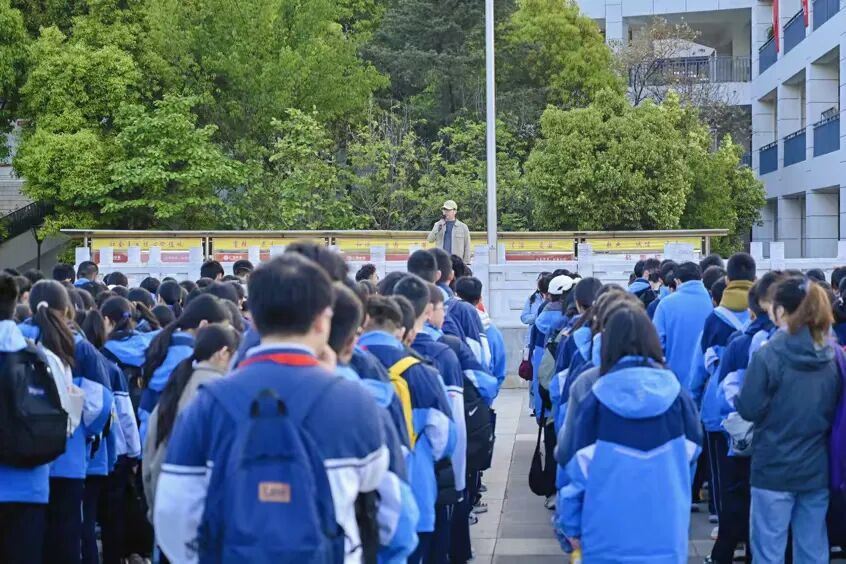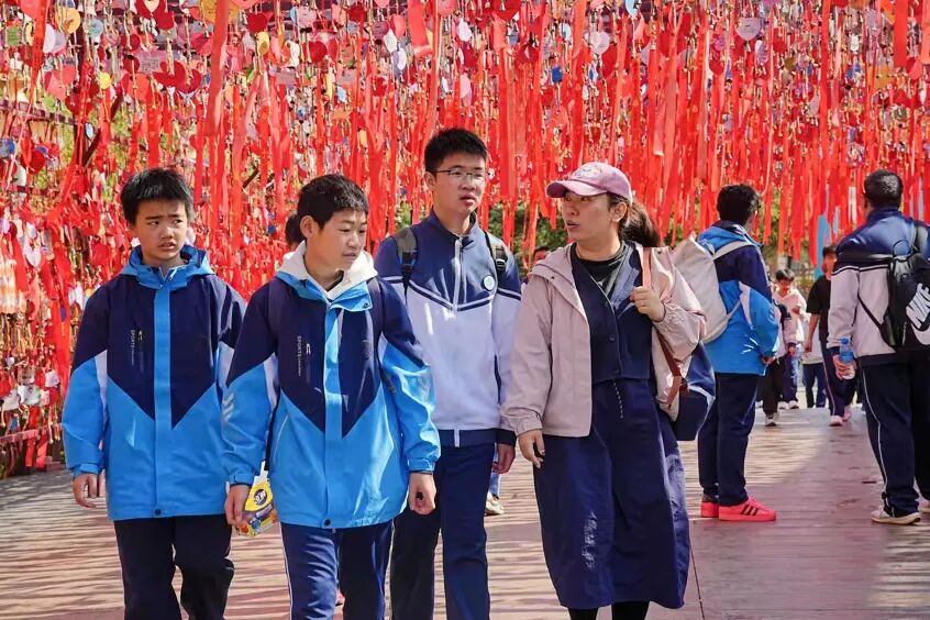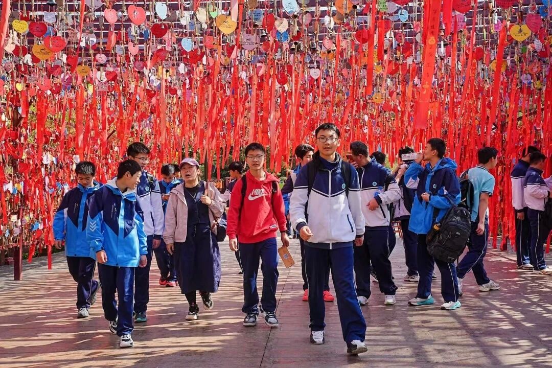抵达目的地后,初一、初二、高中年级各班在景区大门前定格春日合影,以春光为幕、同窗为伴,一张张笑脸映照着少年朝气。随后大家有序列队,在老师引导下完成分组,明确活动纪律与安全要求,正式开启探索之旅。