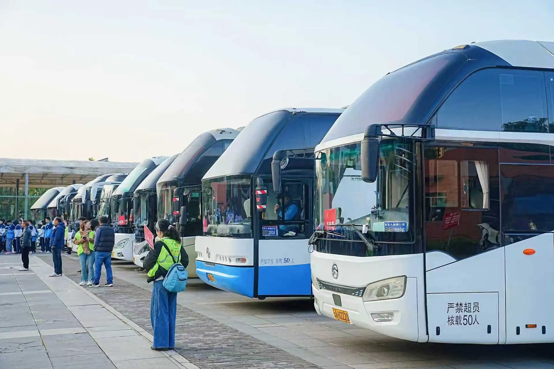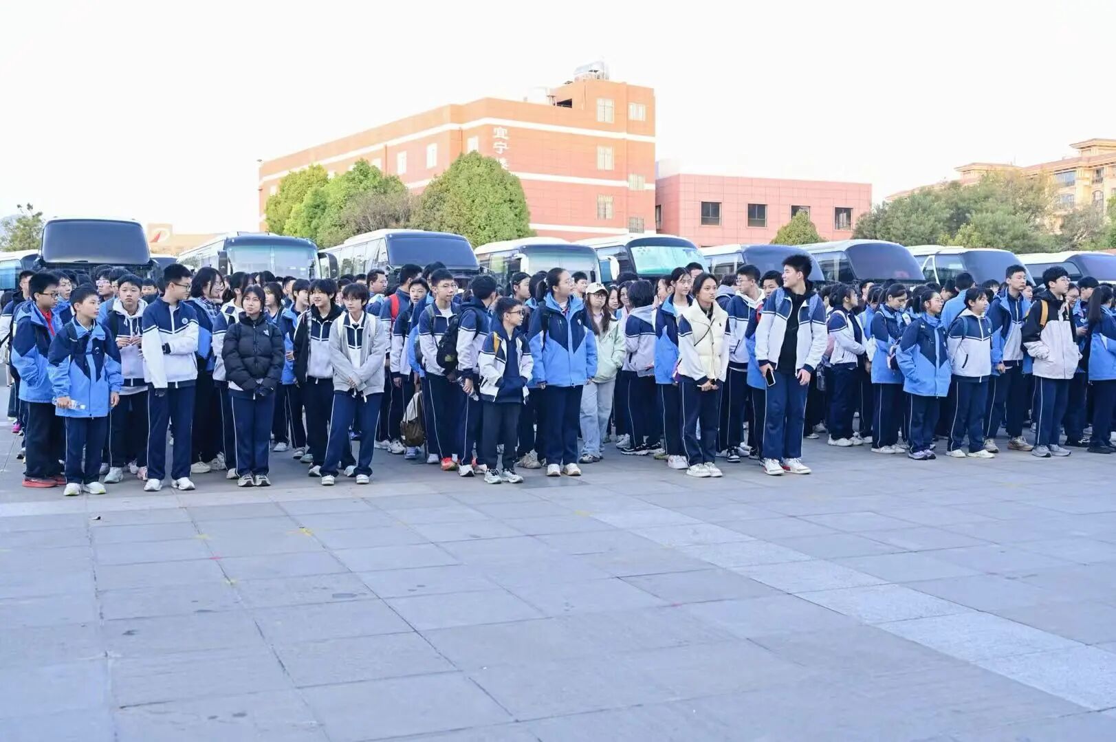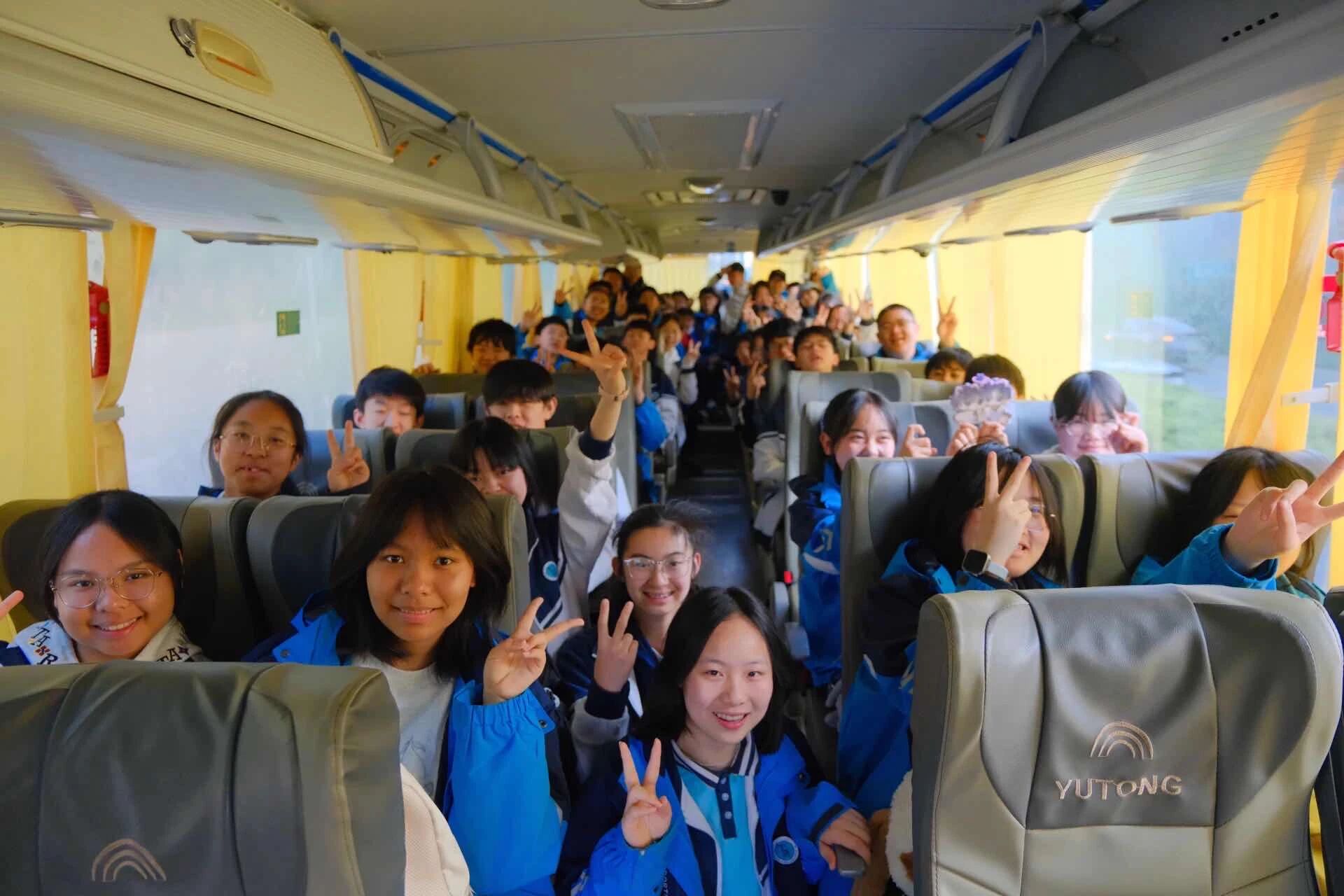 清晨的校园满是朝气,初中各年级师生准时在校园内集结。行前安全教育大会上,班主任与跟班教师细致叮嘱安全事项、出行纪律与活动流程,句句叮咛彰显守护初心;食堂暖心早餐为师生补充能量,大巴车厢里欢声笑语不断,老师们融入学生之中,闲话家常、分享趣事,为春日旅程铺垫温情底色。